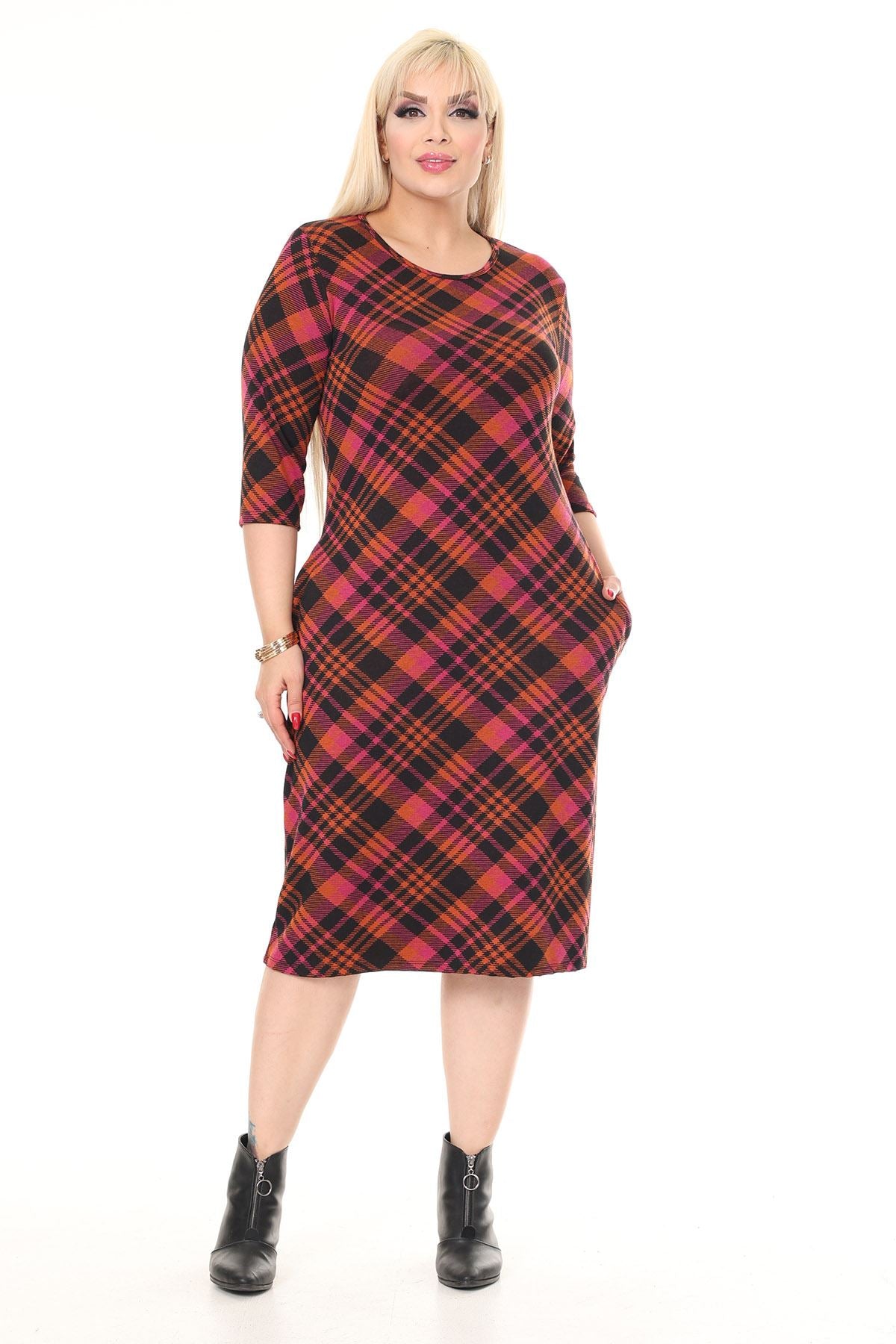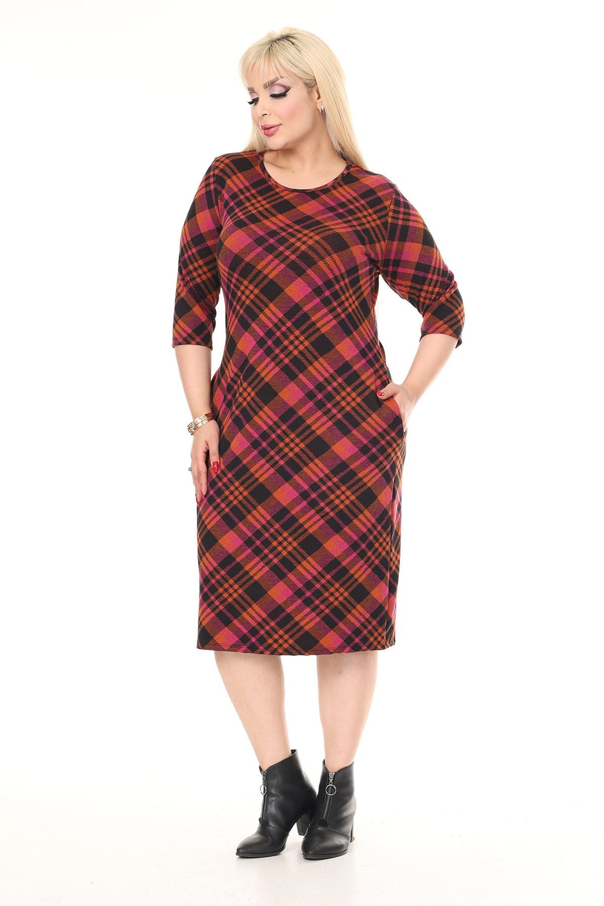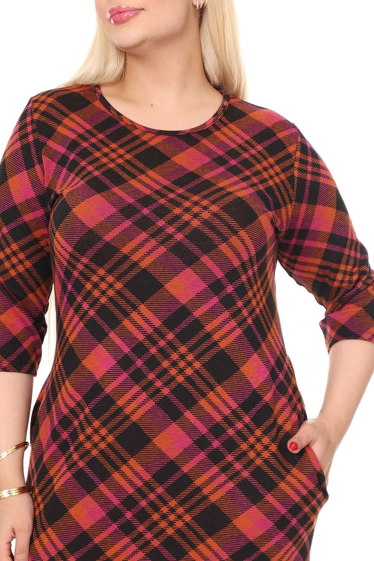 Winterkleid mit Stretch-Muster und Doppeltasche in Übergröße 30A-2614