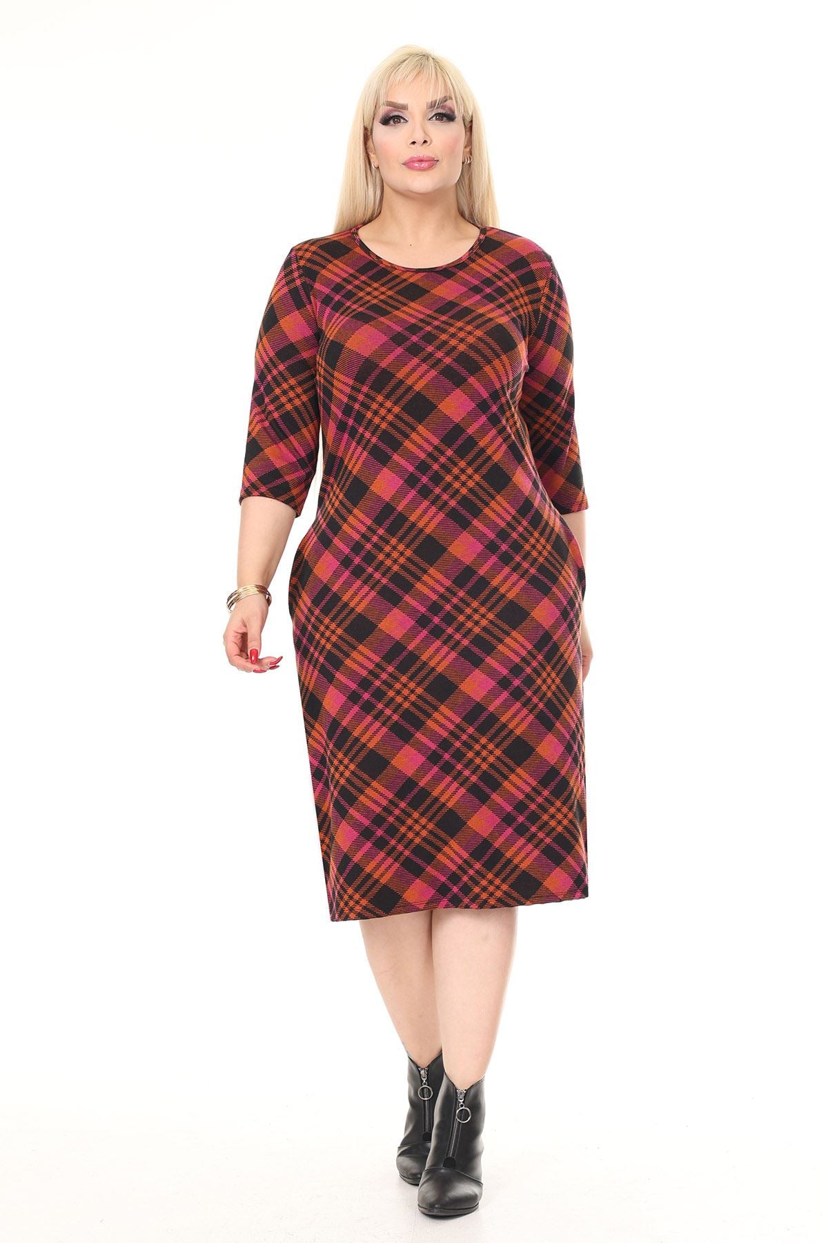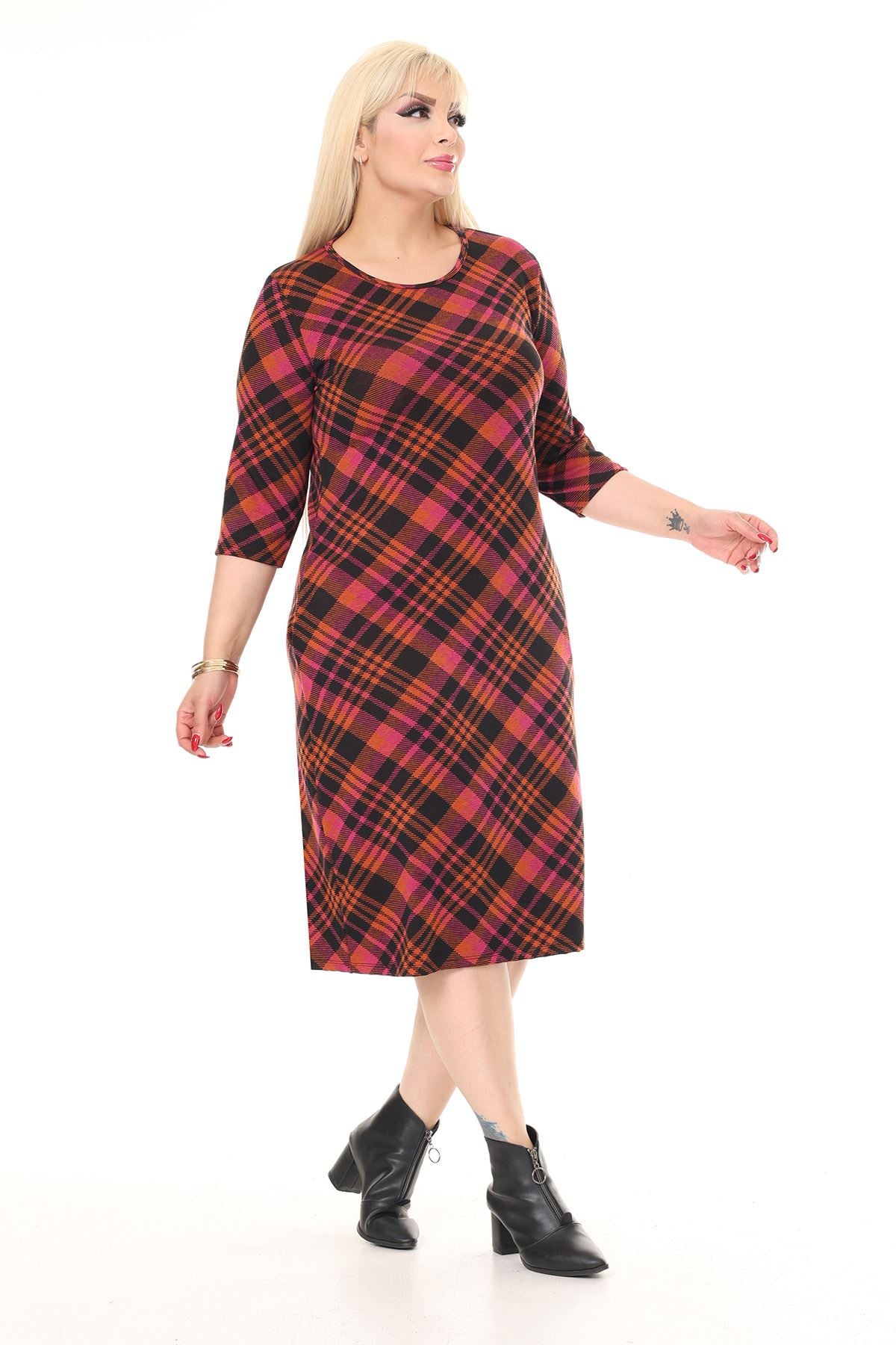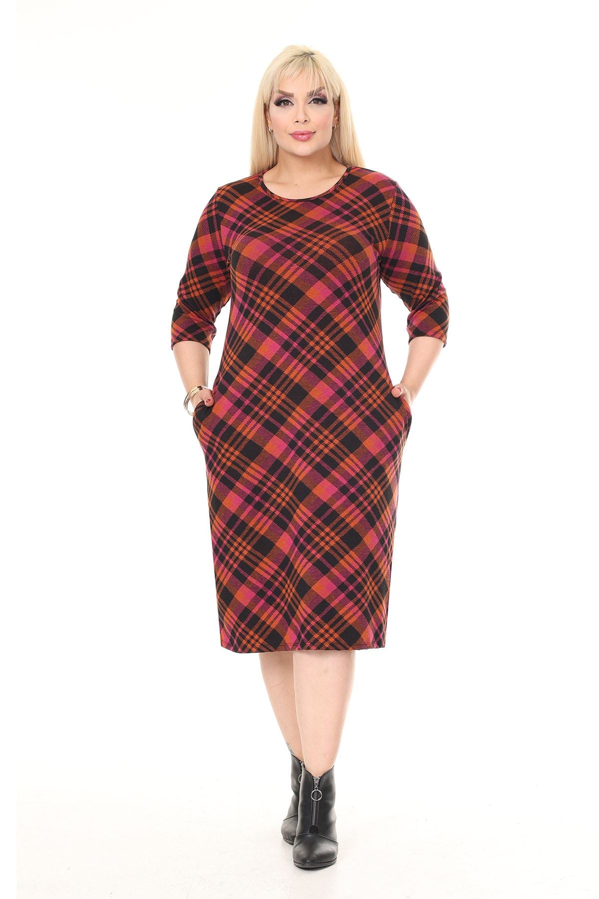 Winterkleid mit Stretch-Muster und Doppeltasche in Übergröße 30A-2614