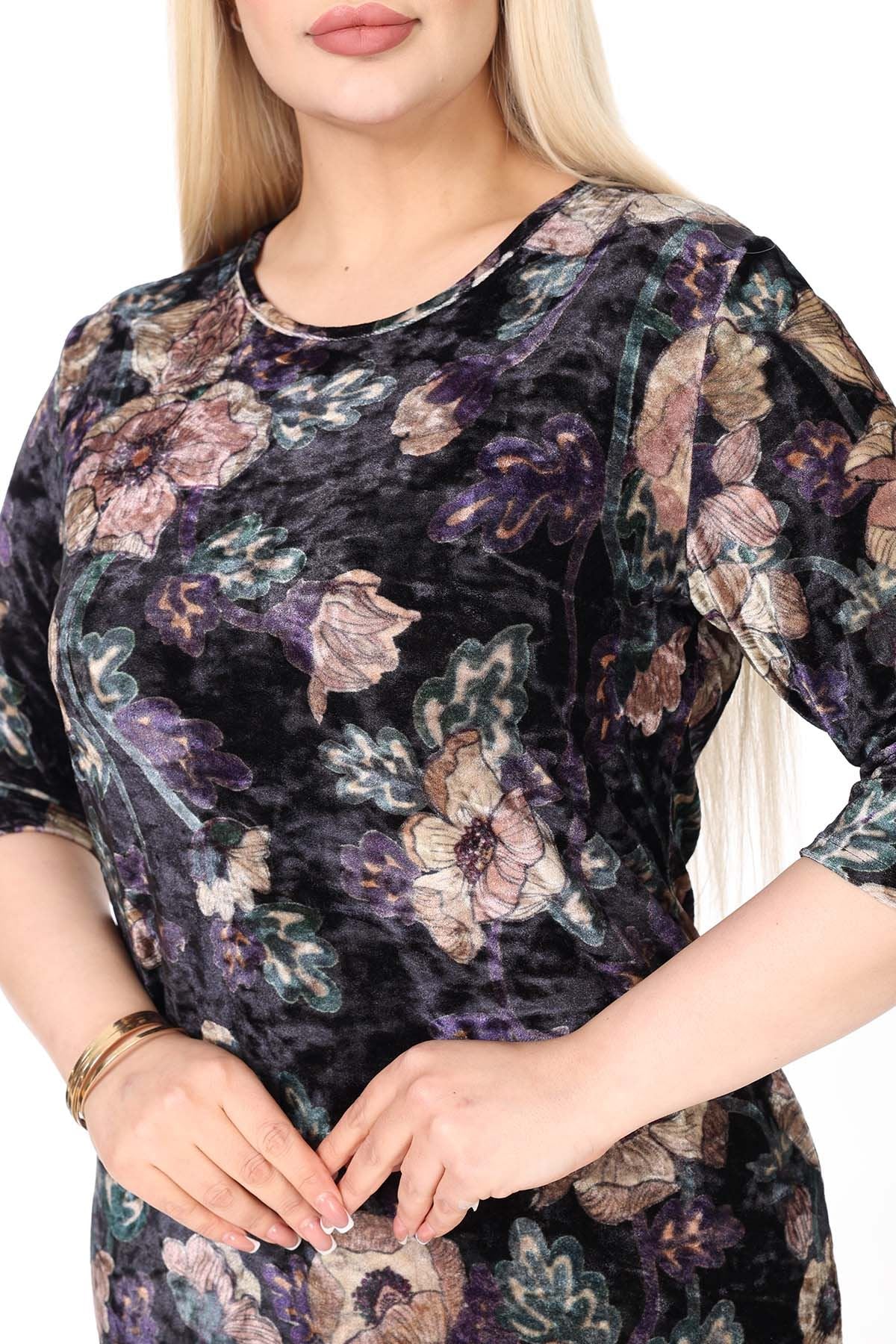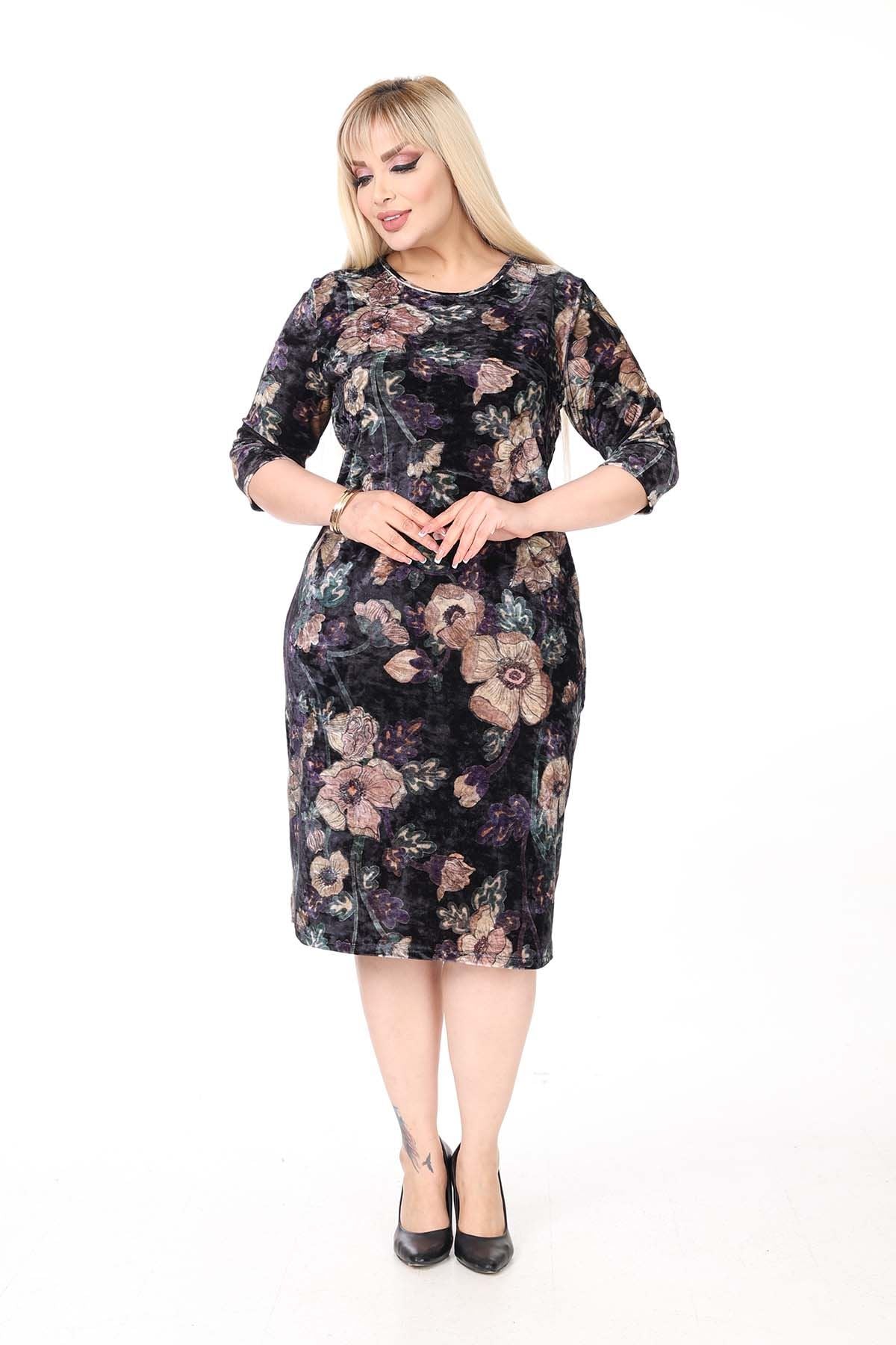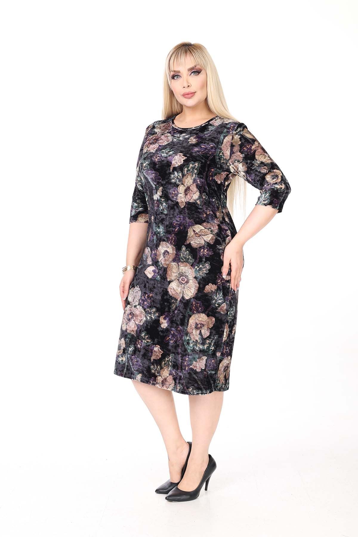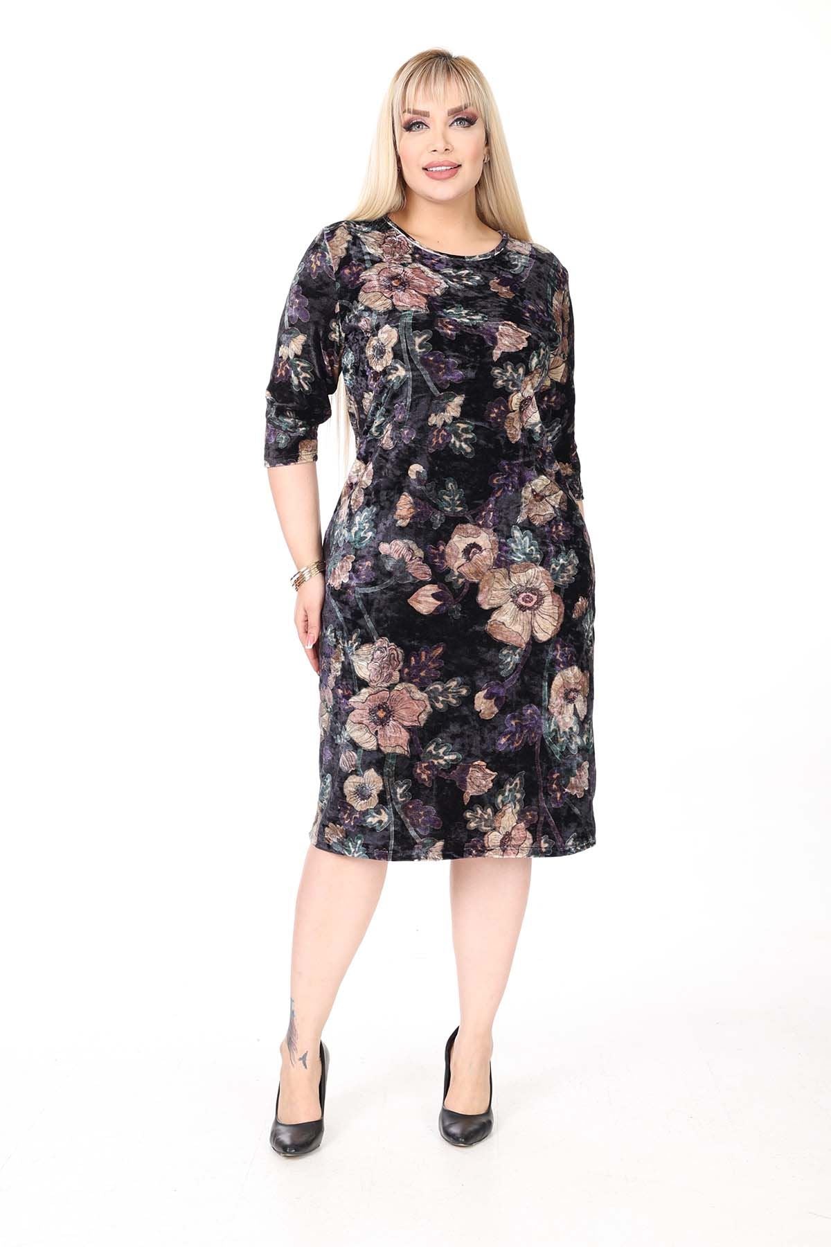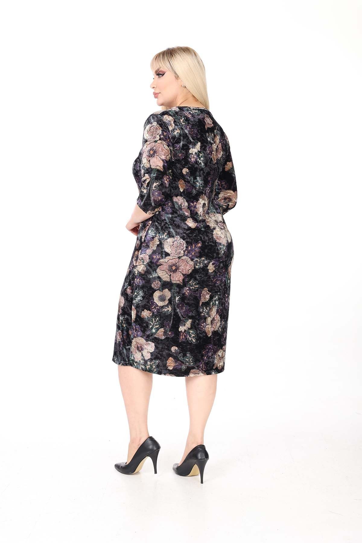 Winter-Samtkleid in Übergröße mit zwei Taschen 27D-2638