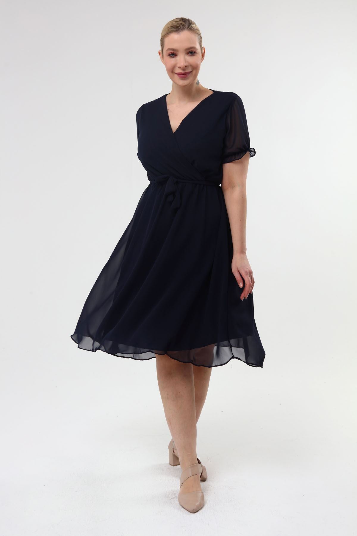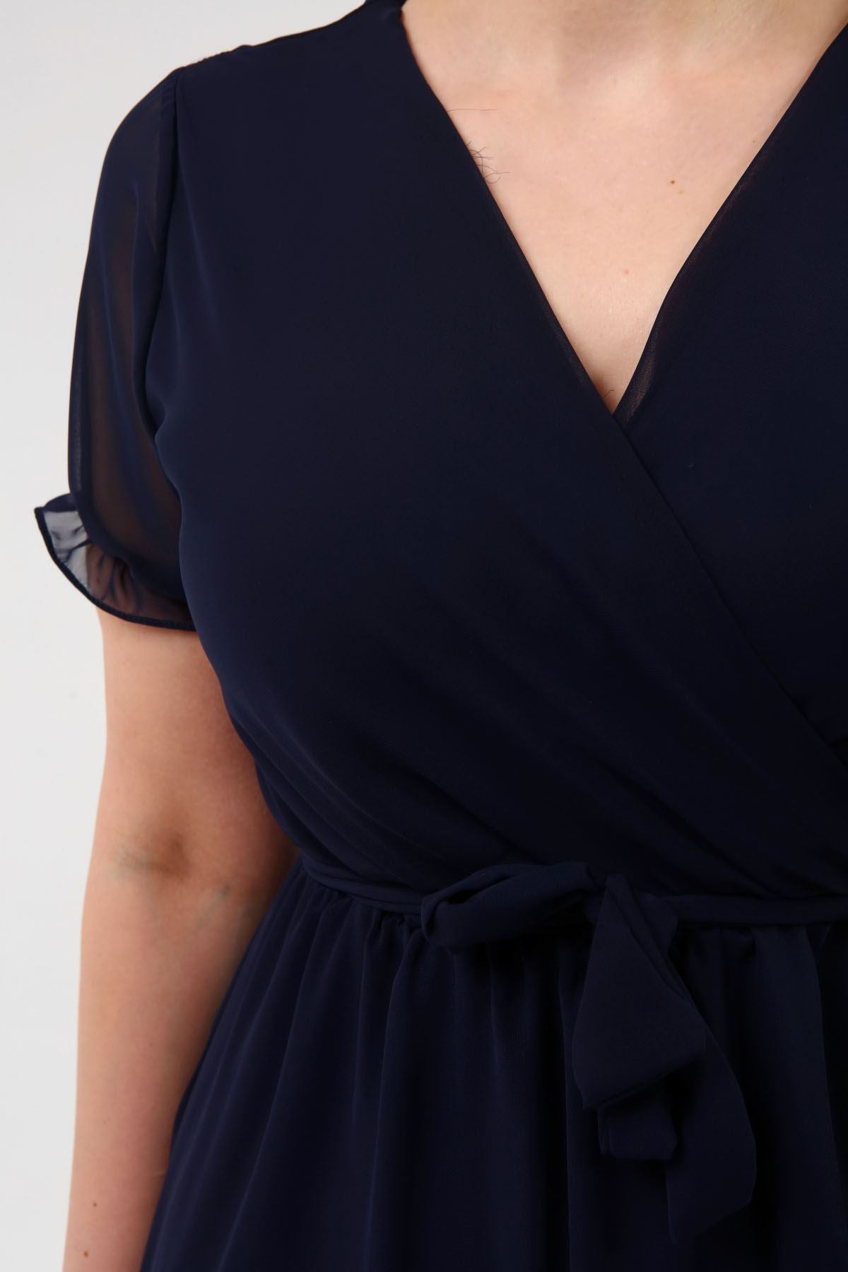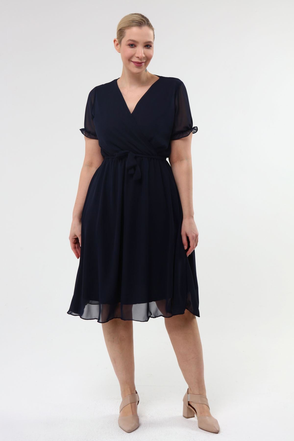 Übergroßes Chiffonkleid in Marineblau mit Kreuzausschnitt 34D-1968