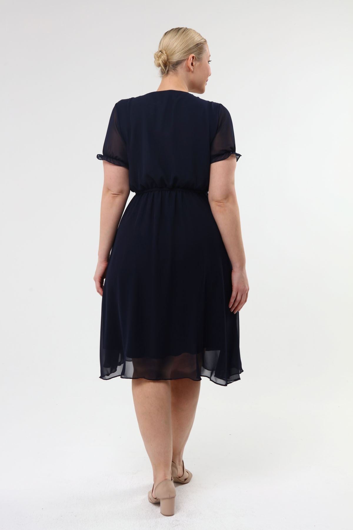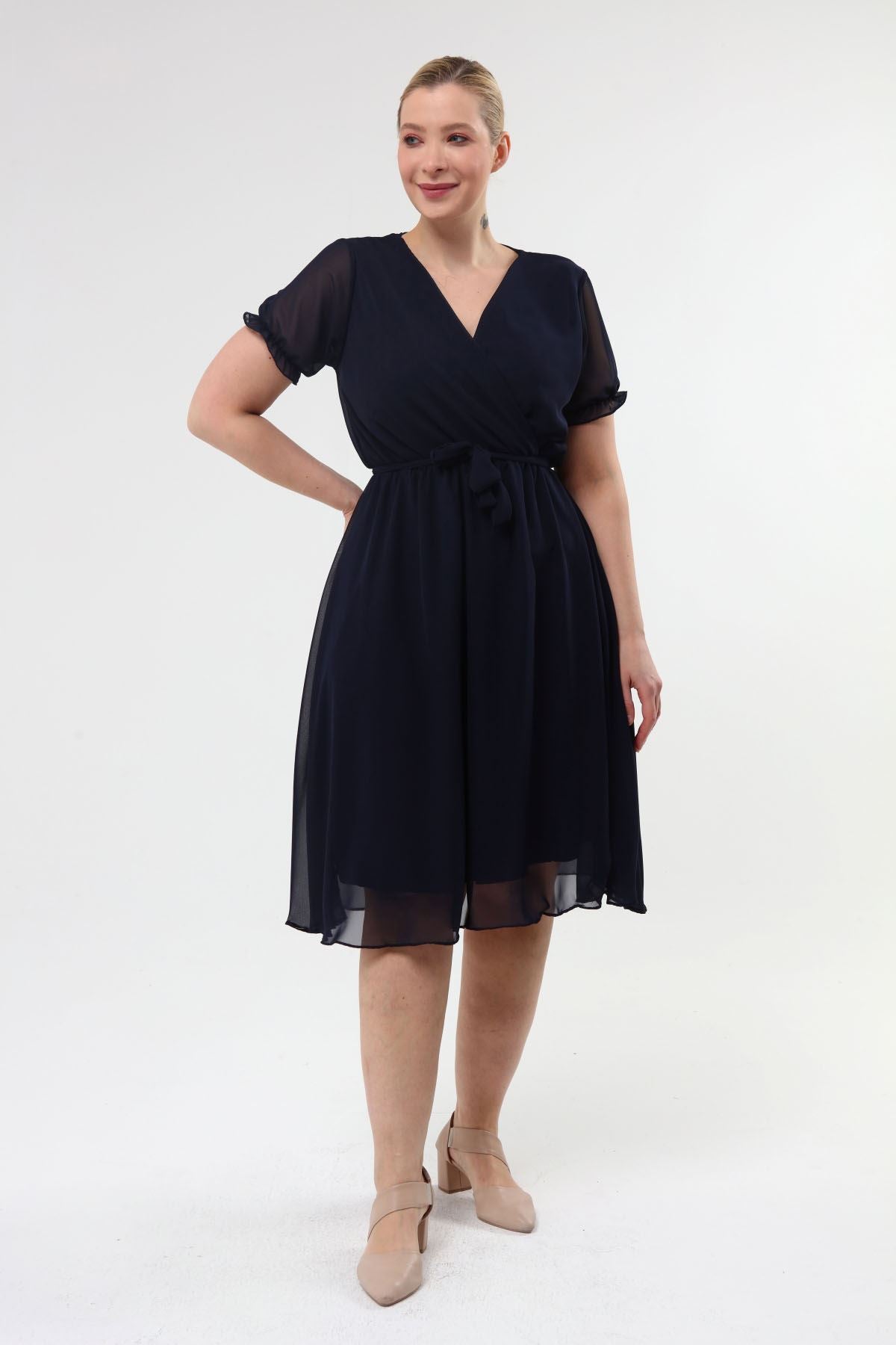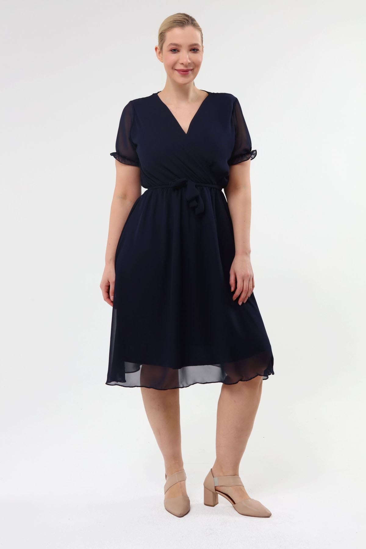 Übergroßes Chiffonkleid in Marineblau mit Kreuzausschnitt 34D-1968