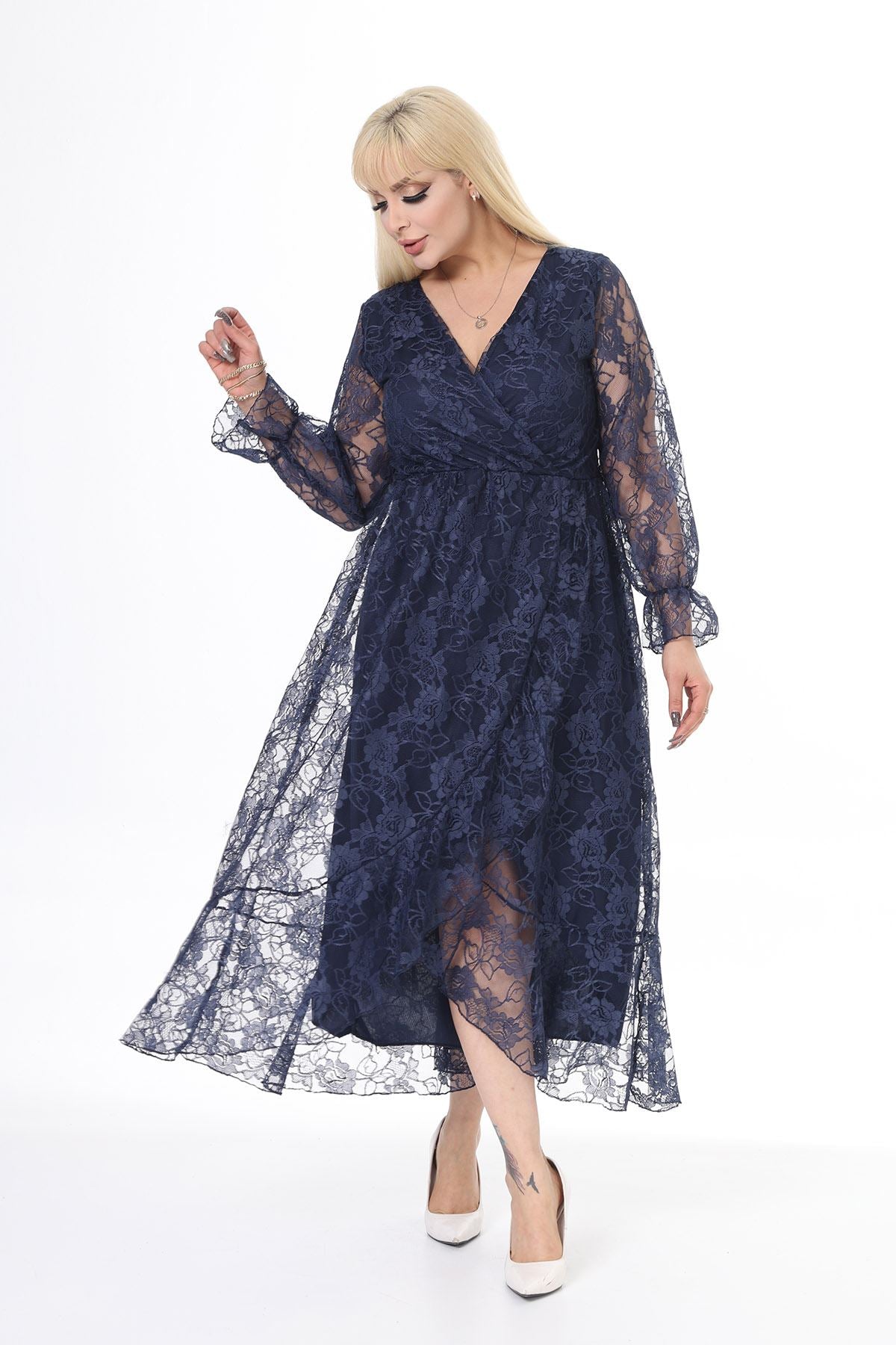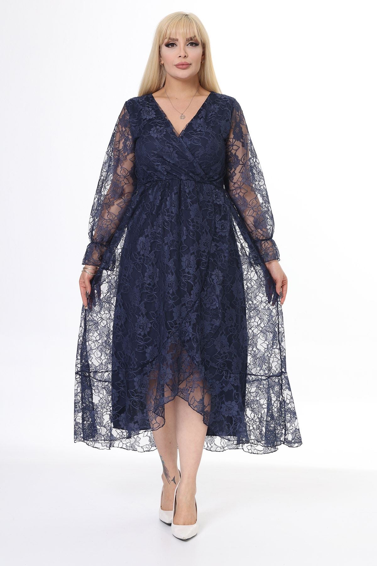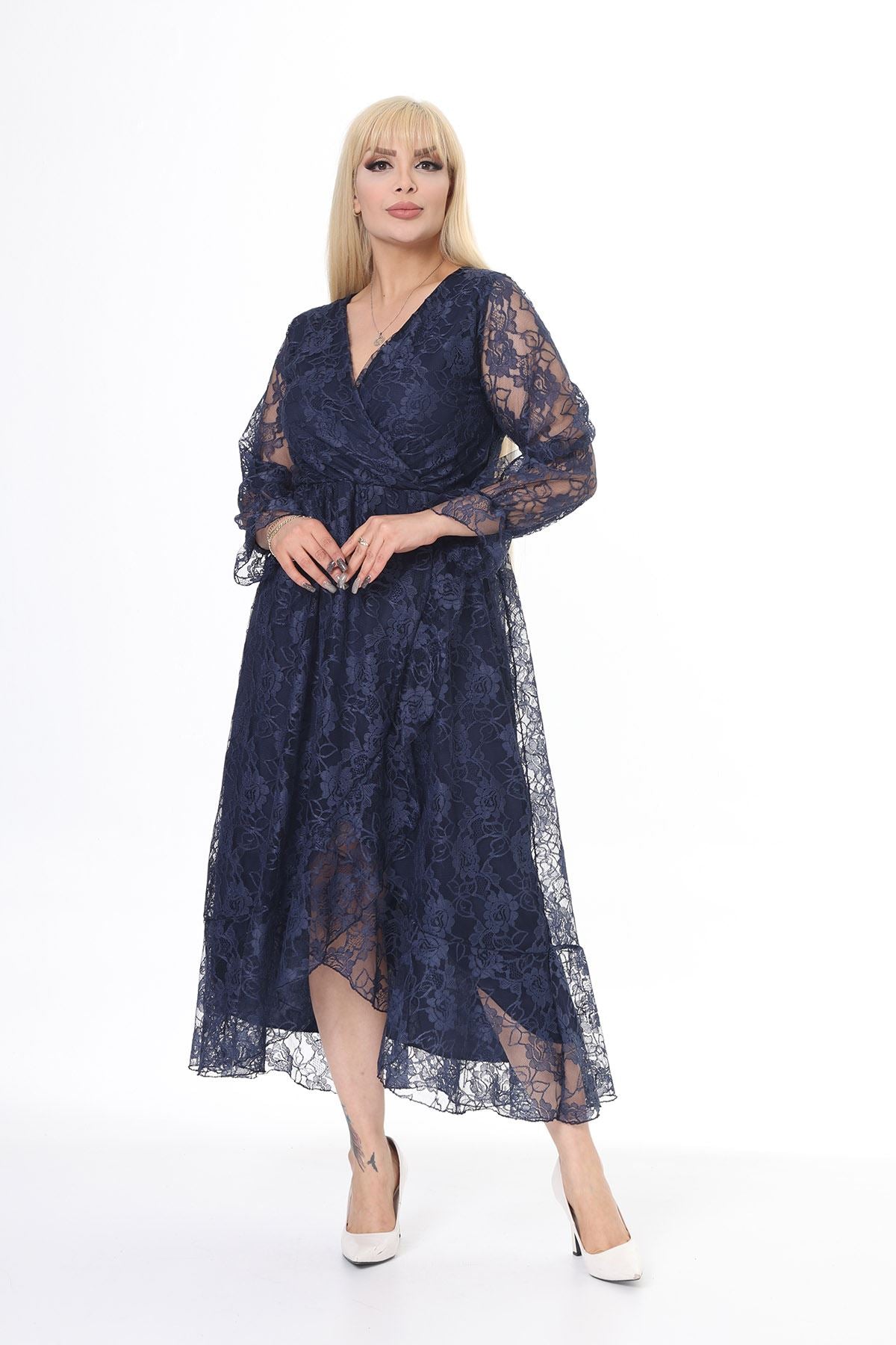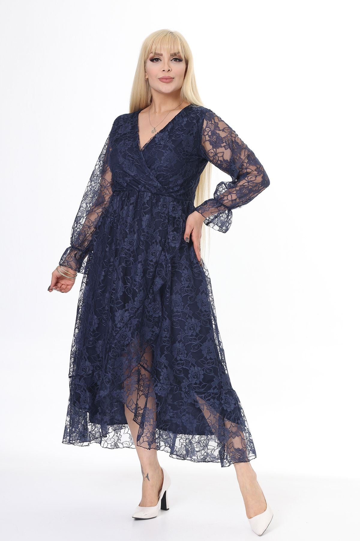 Übergroßes Spitzenkleid mit gekreuztem Ausschnitt und langen Ärmeln 41A-2450