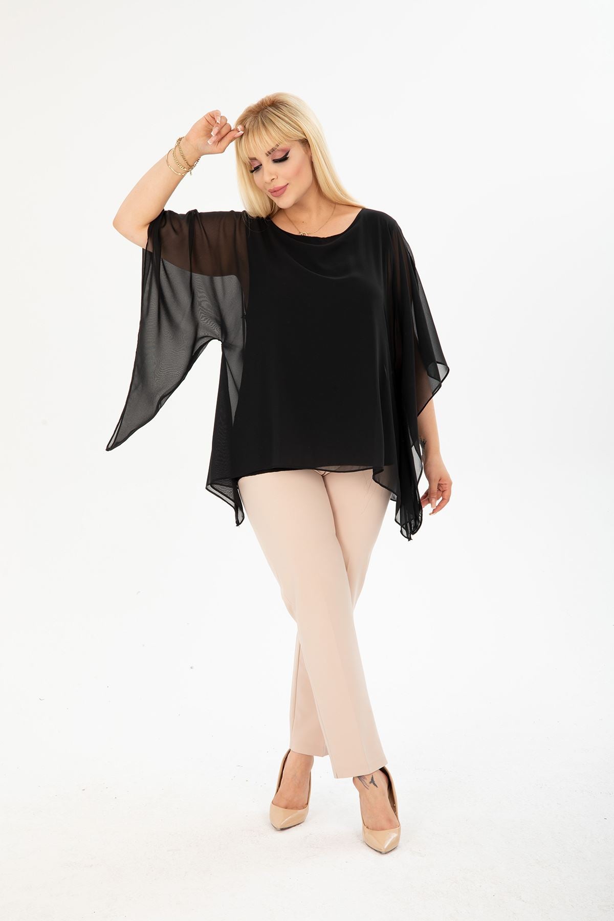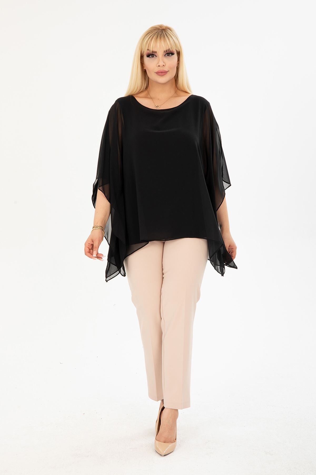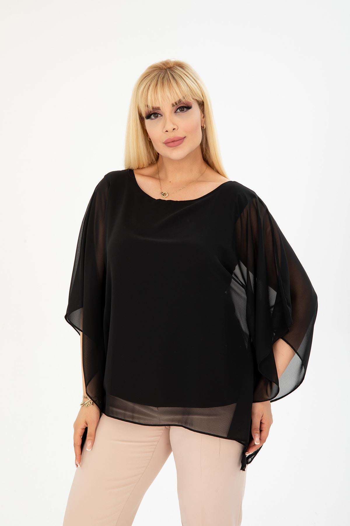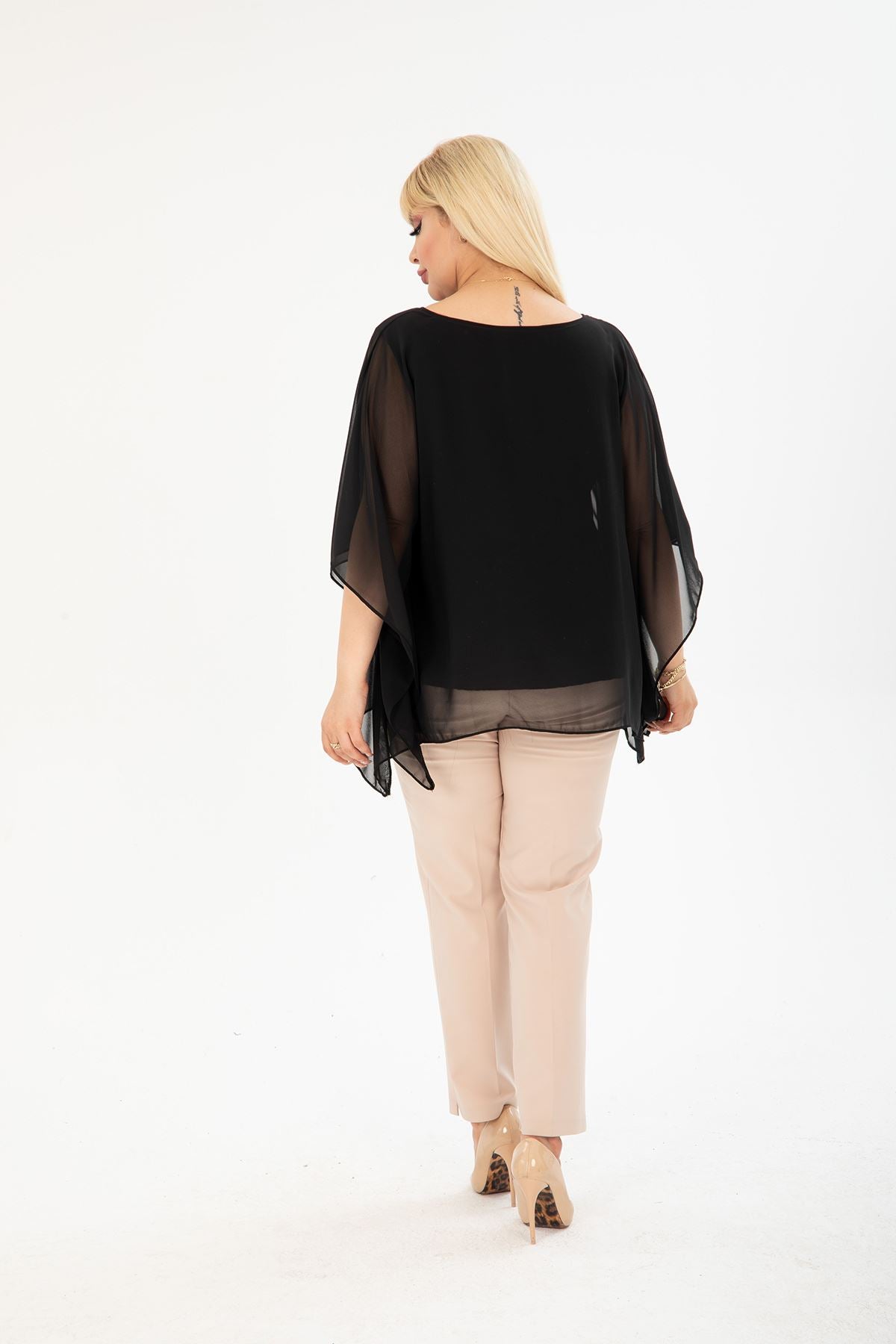 Chemisier en mousseline noire grande taille 27F-2401