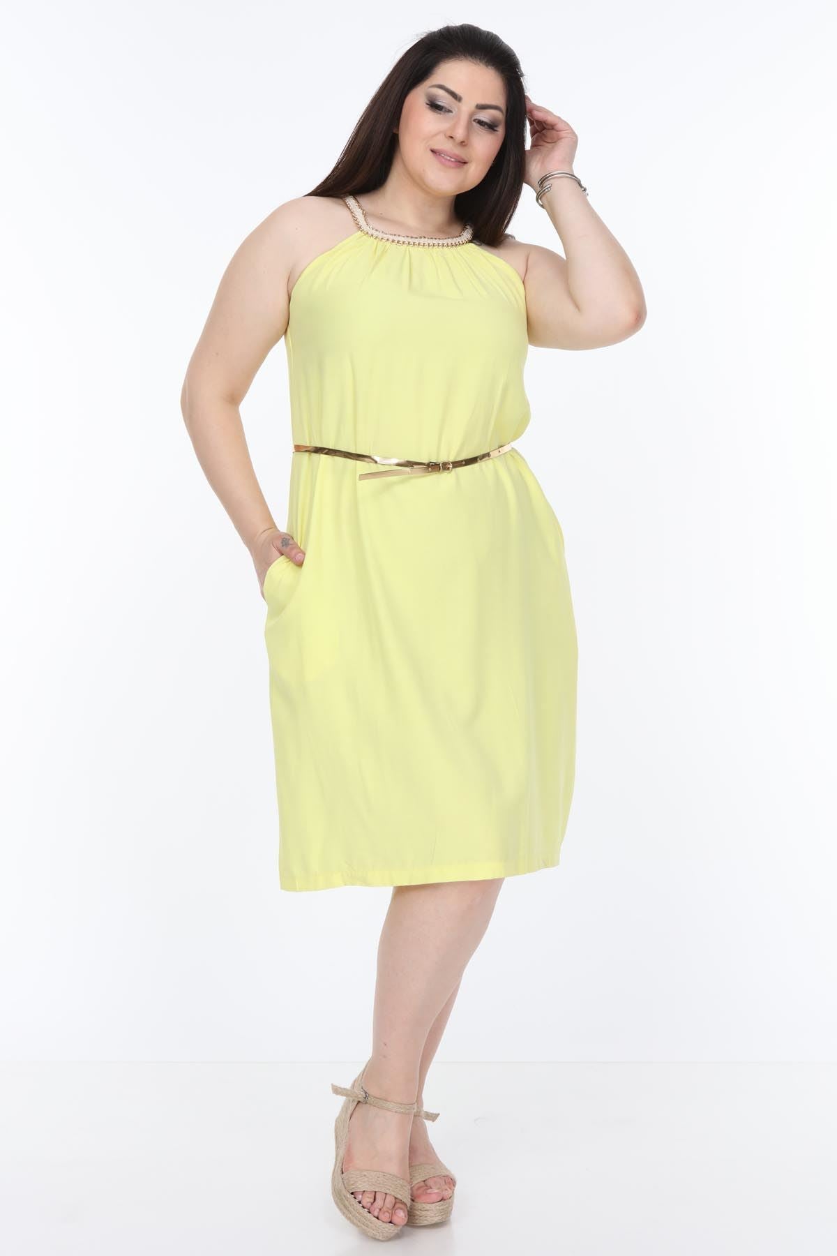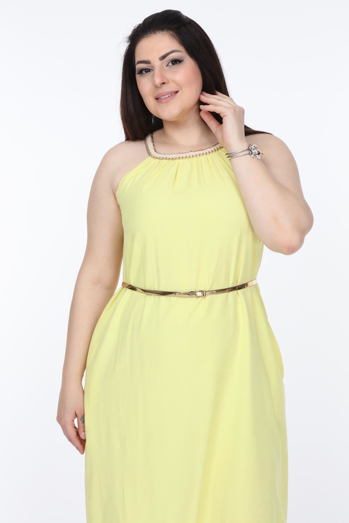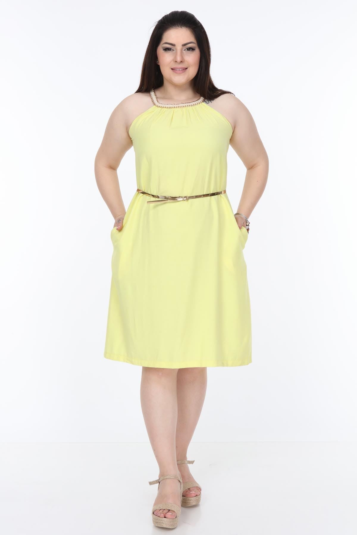 Robe jaune détaillée Yaka en grande taille 1E-1045