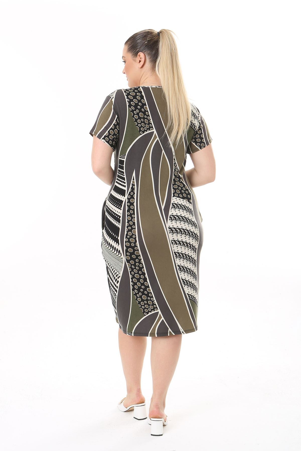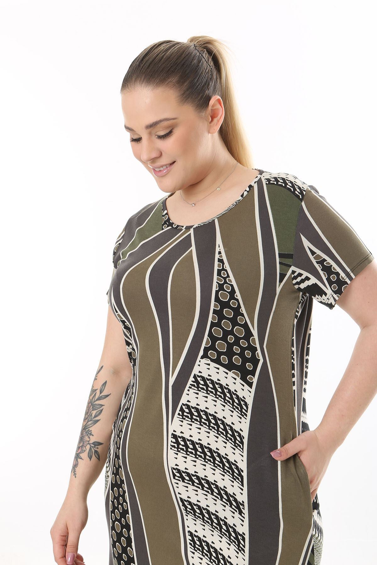 MESURES DU MODÈLE Taille: 1,75 cm Taille: 42 DÉTAILS DU PRODUIT Couleur du produit: à motifs Taille de l'échantillon: 44 Hauteur de l'échantillon: 114 cm Taille 44-46 Taille 104 cm Poitrine 108 cm Taille 48-50...