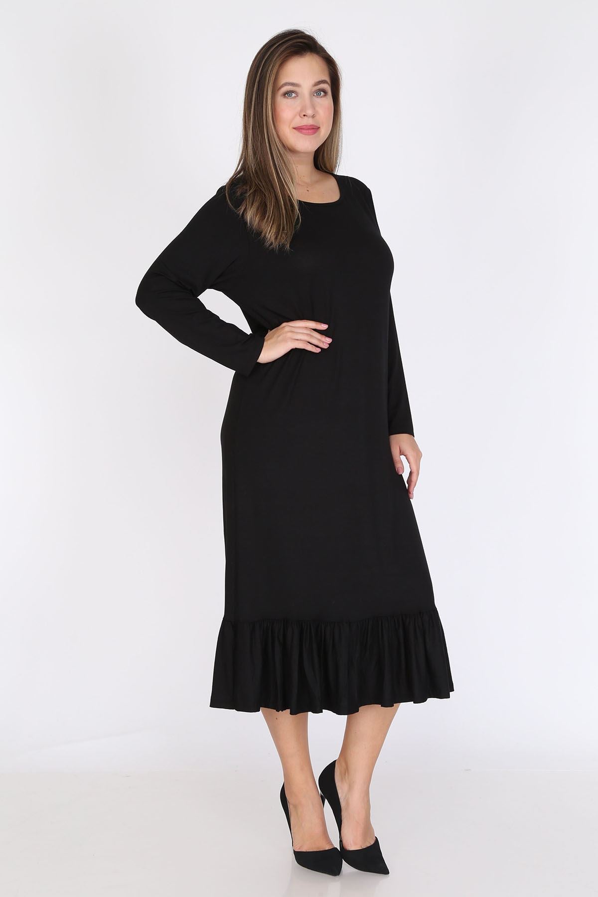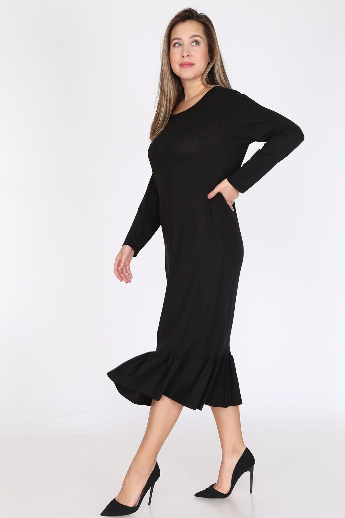 Robe noire à manches longues grande taille 12D-0788