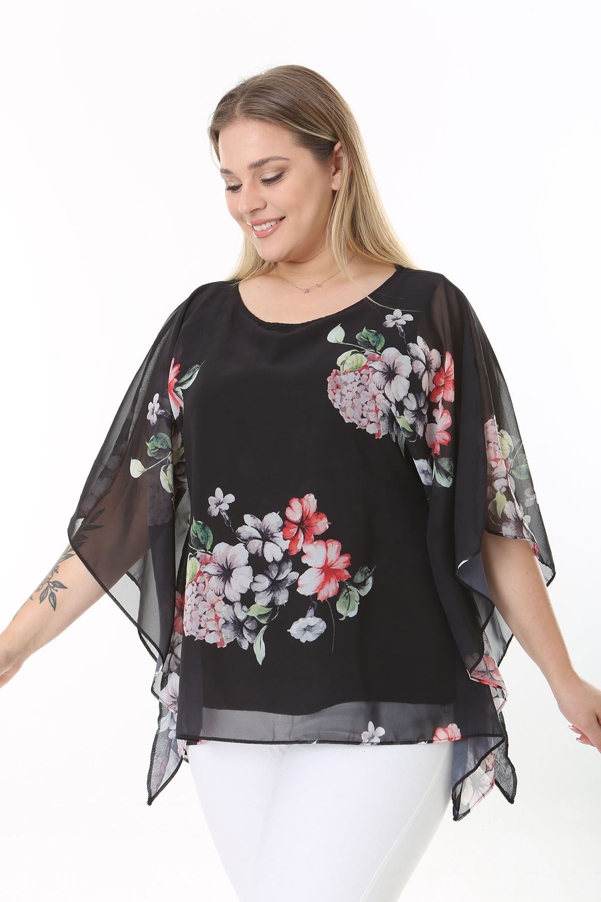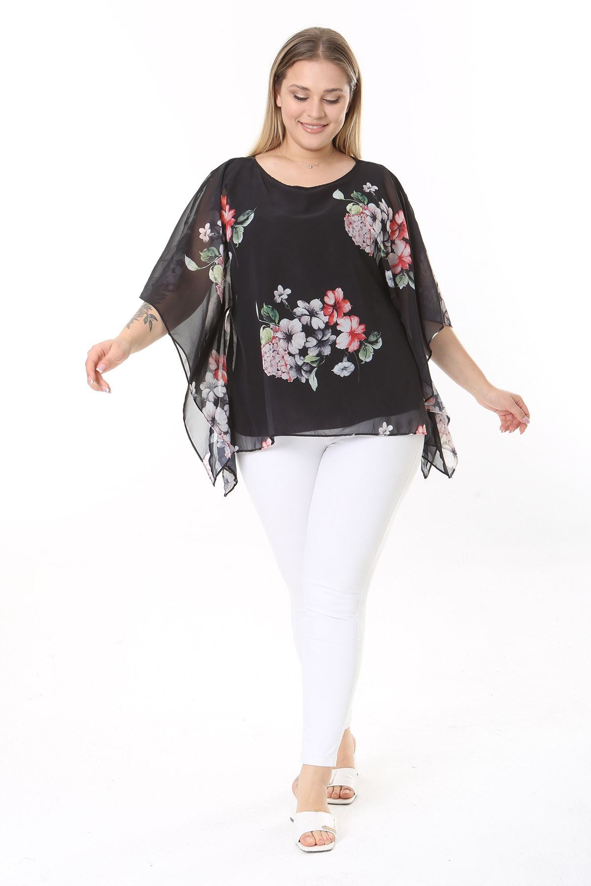 Chemisier en mousseline de soie à motifs grande taille 18D-2540