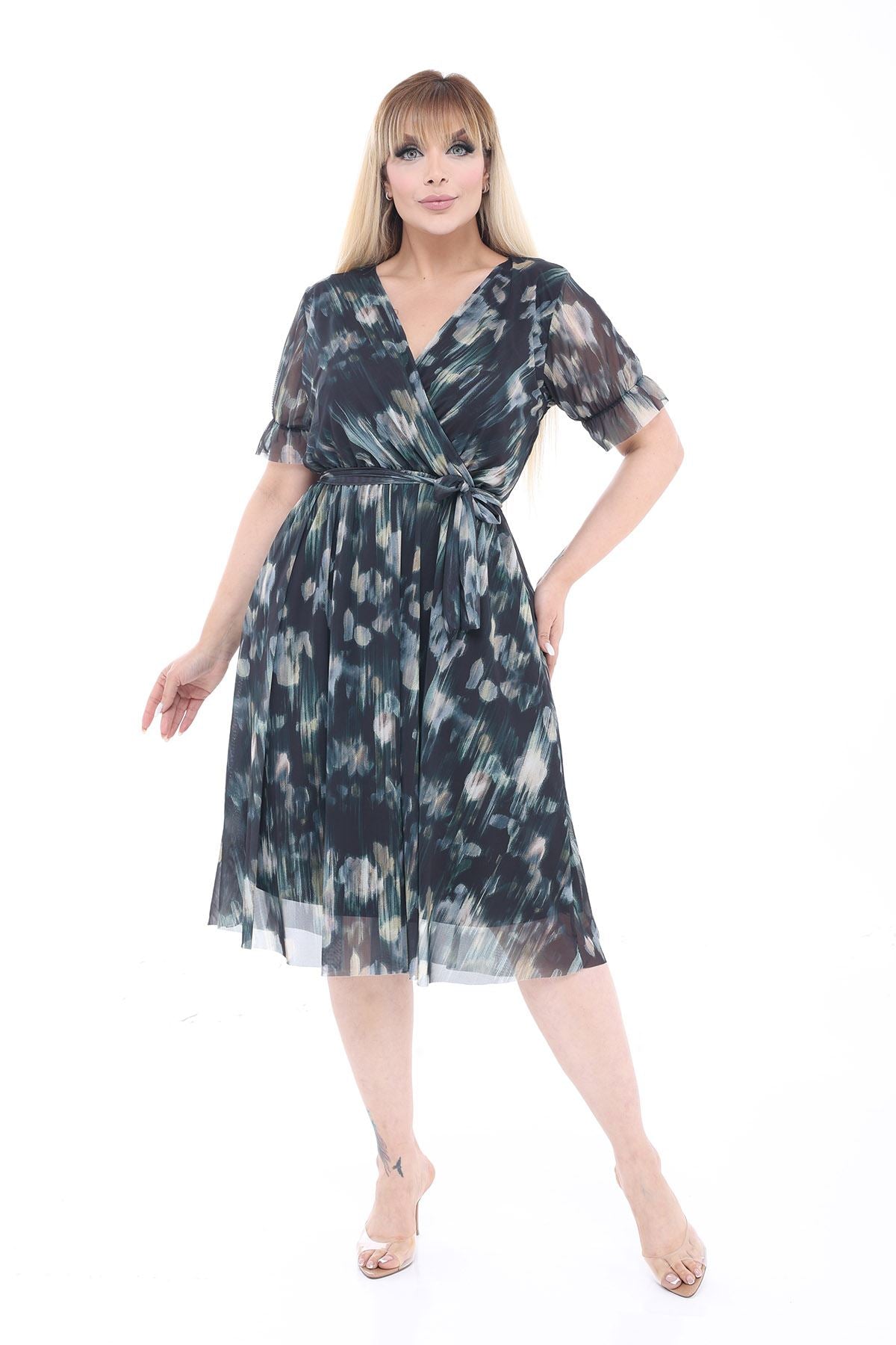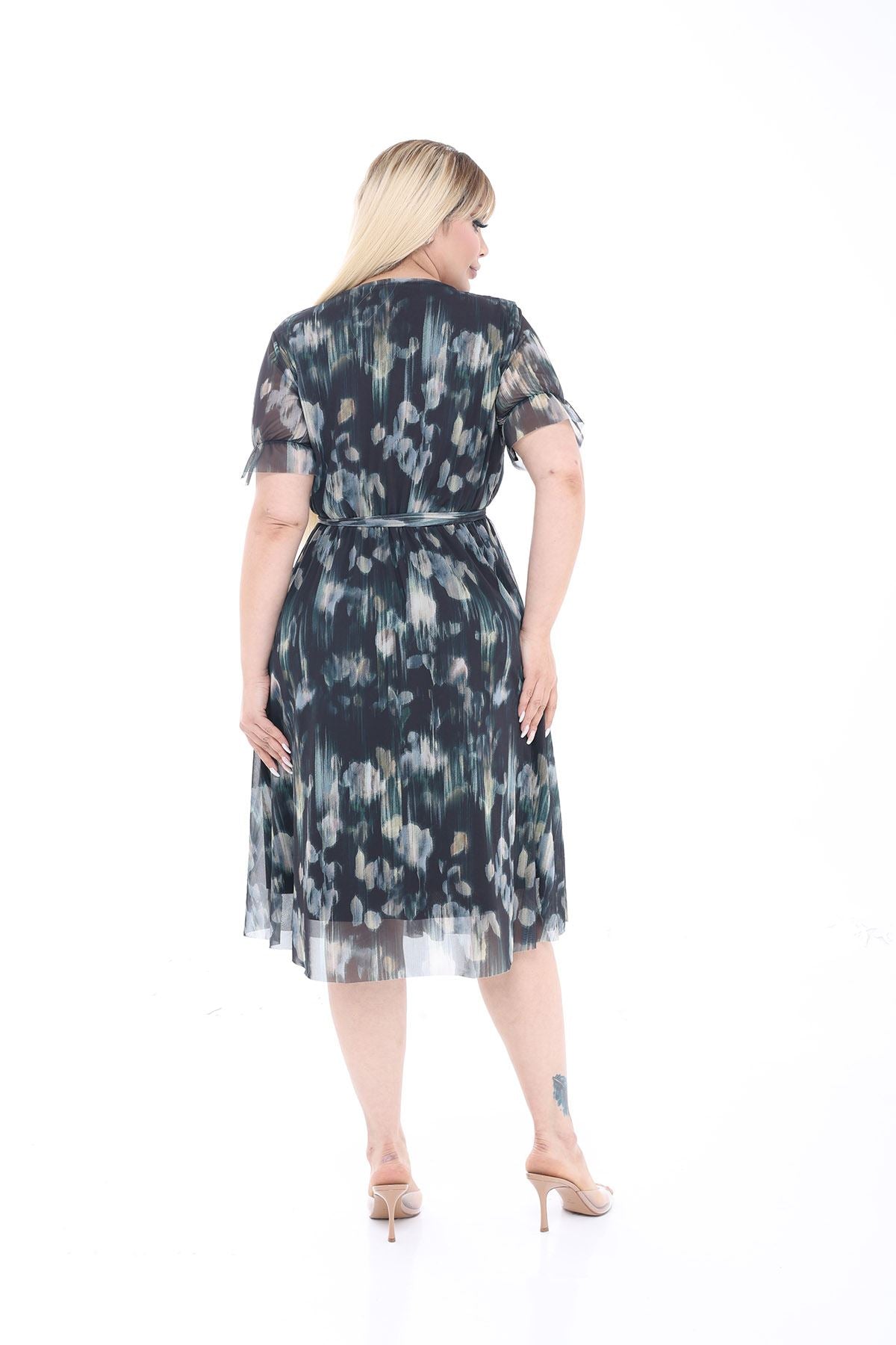 Robe midi grande taille à motif floral avec ceinture à nouer autour du cou 18C-2682