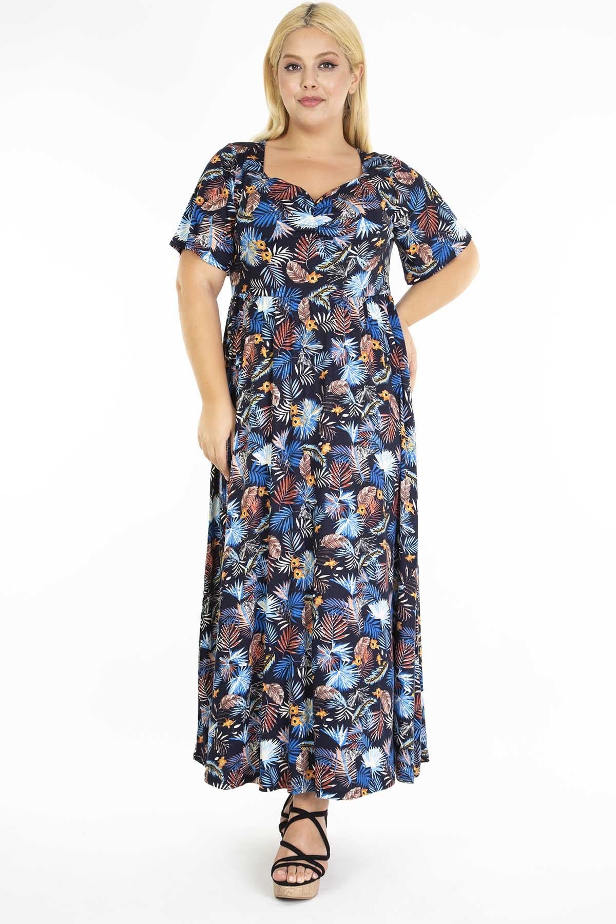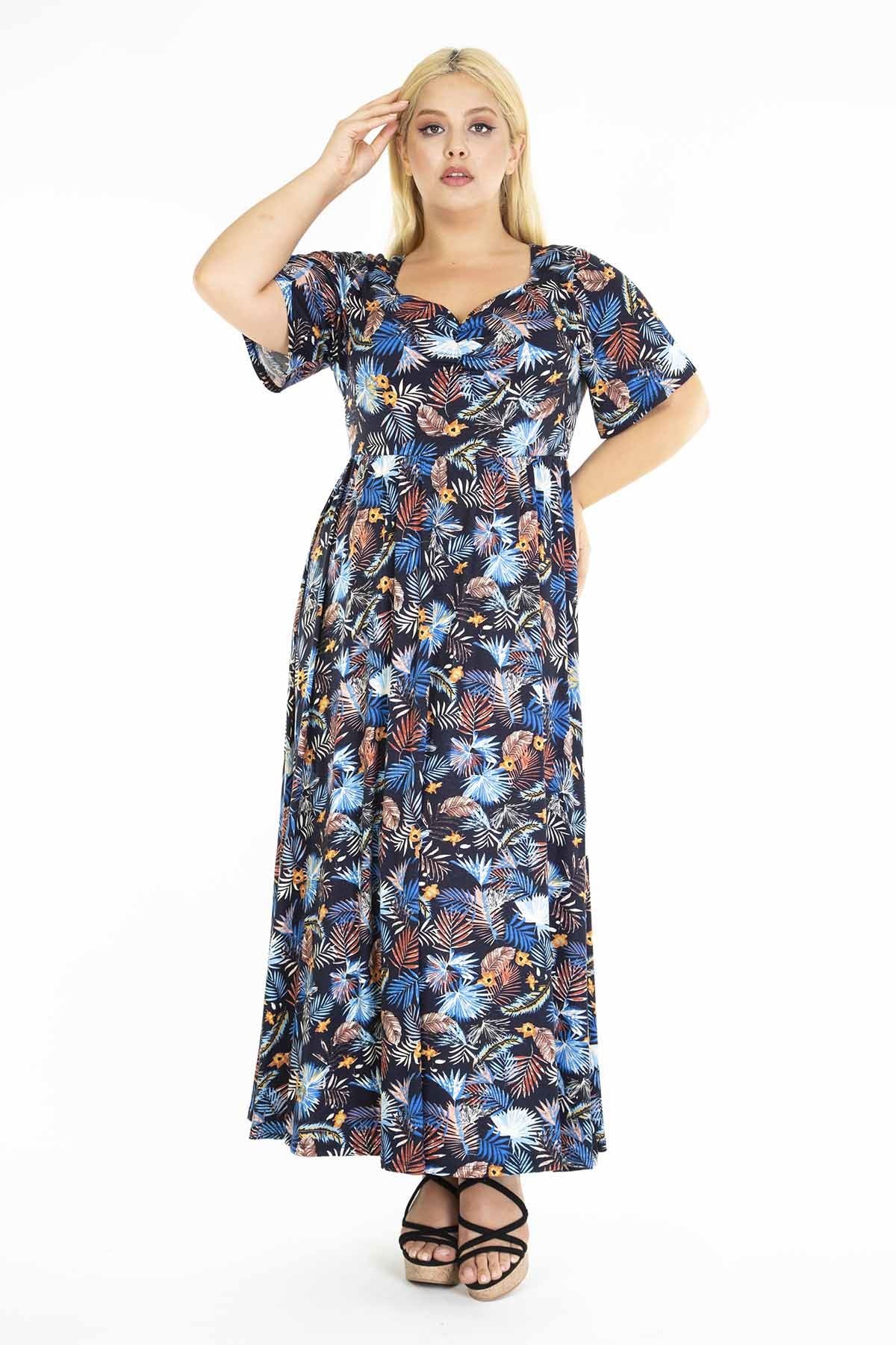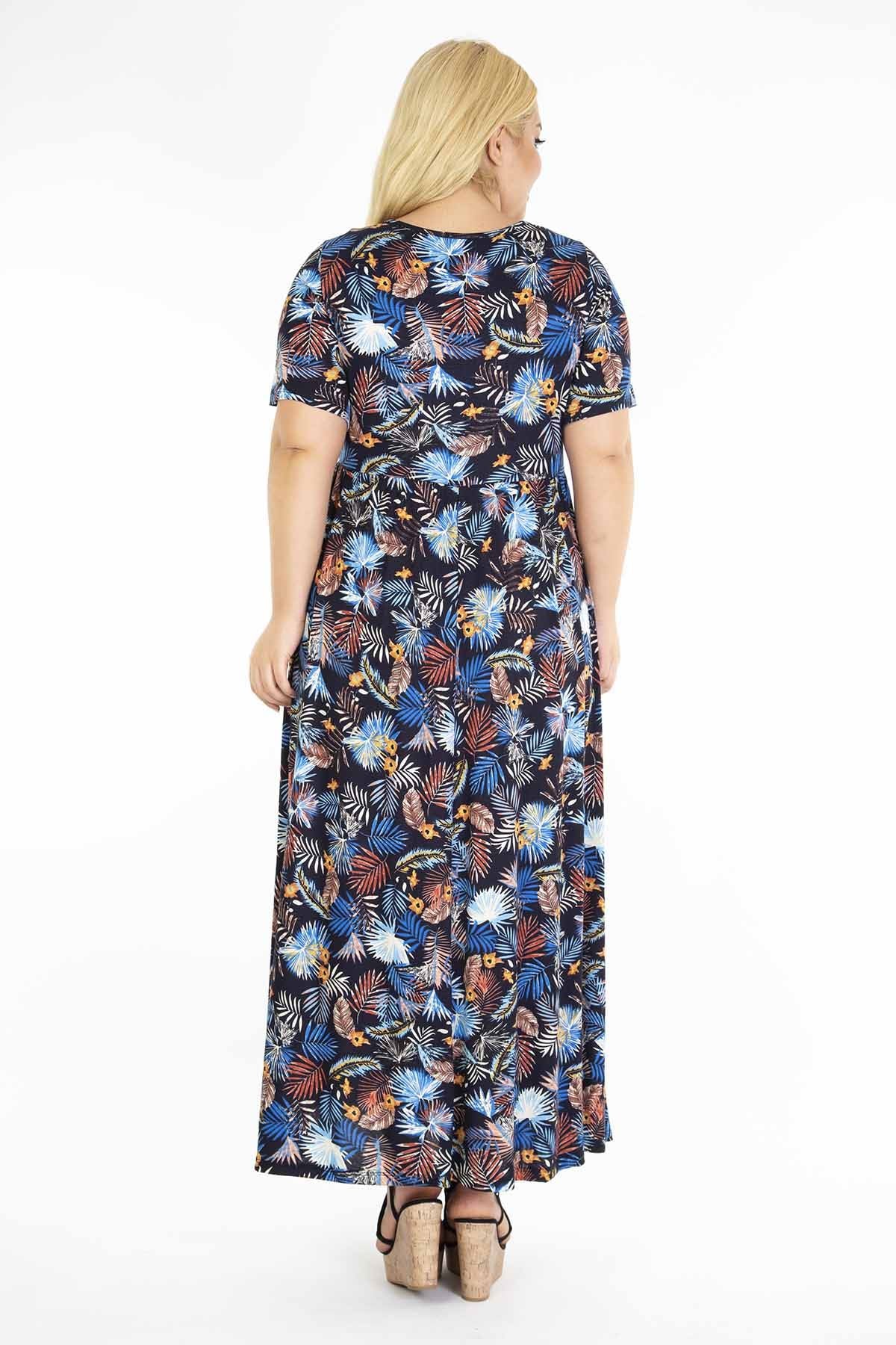 Abito lungo taglie forti con motivo a fiore blu 21A-1221