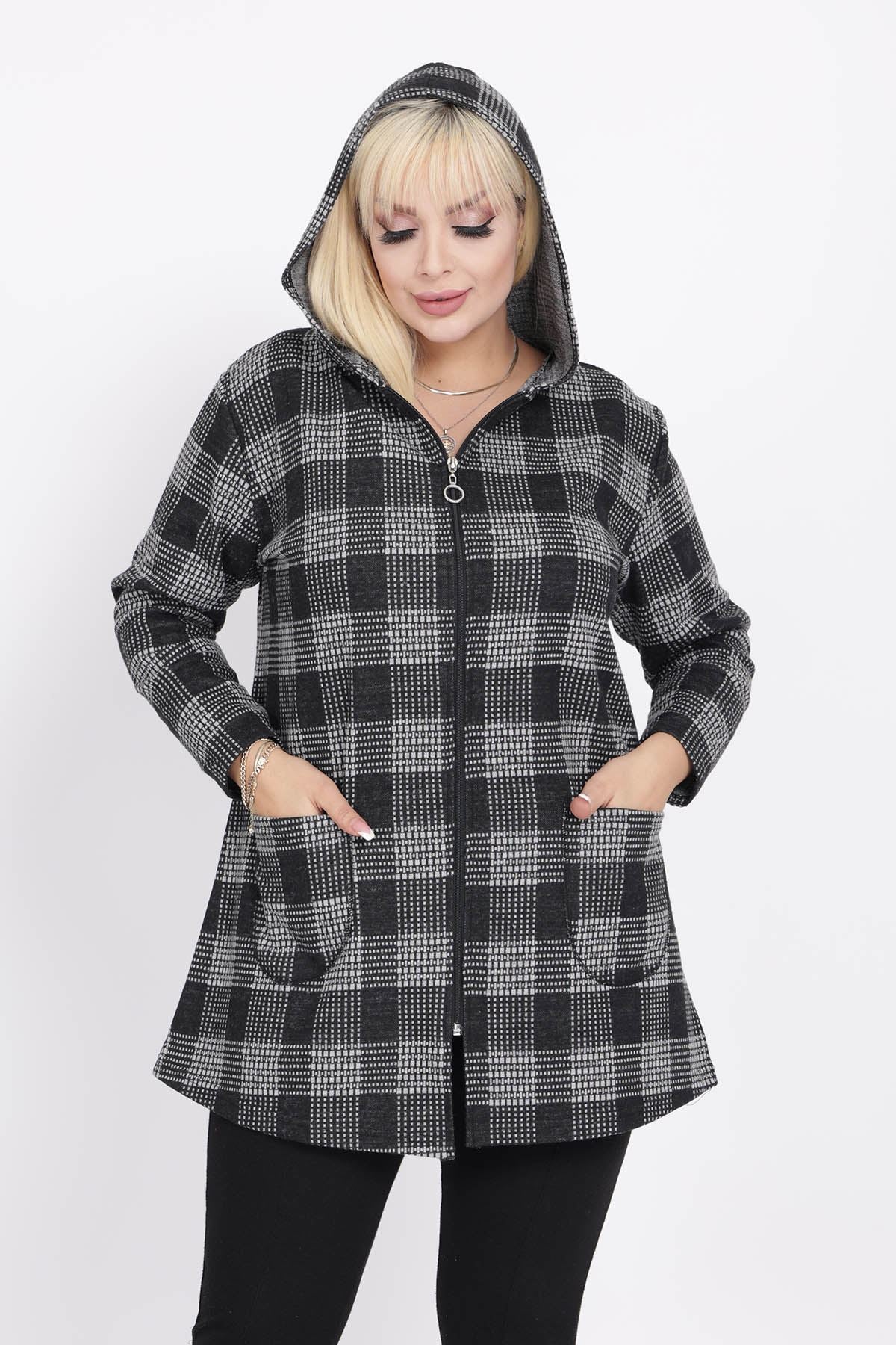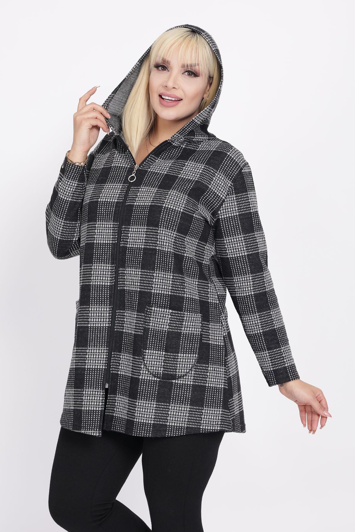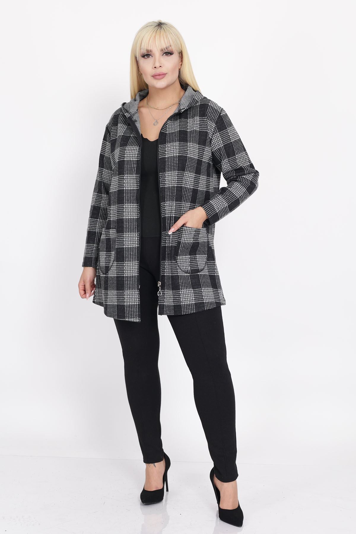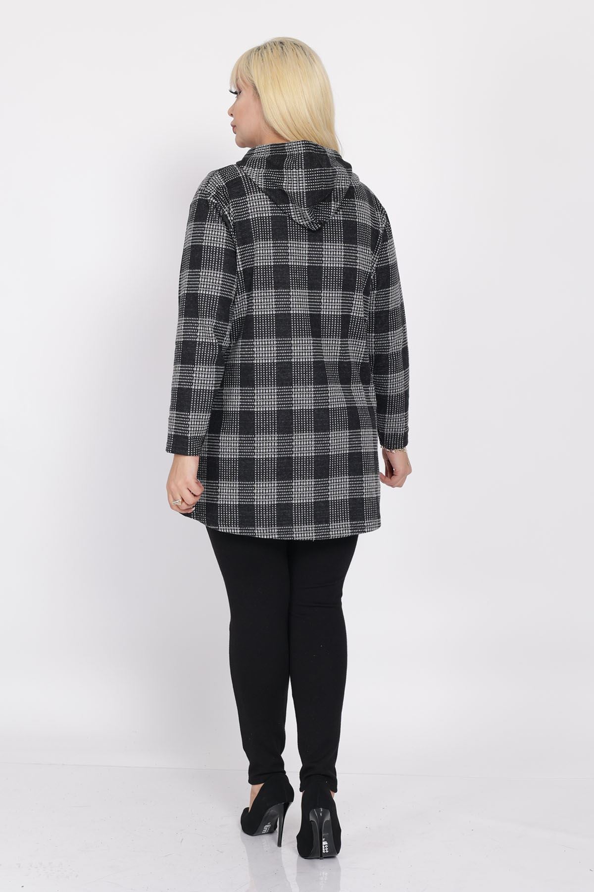Cardigan con cappuccio e tasche taglia plus size 15C-2219