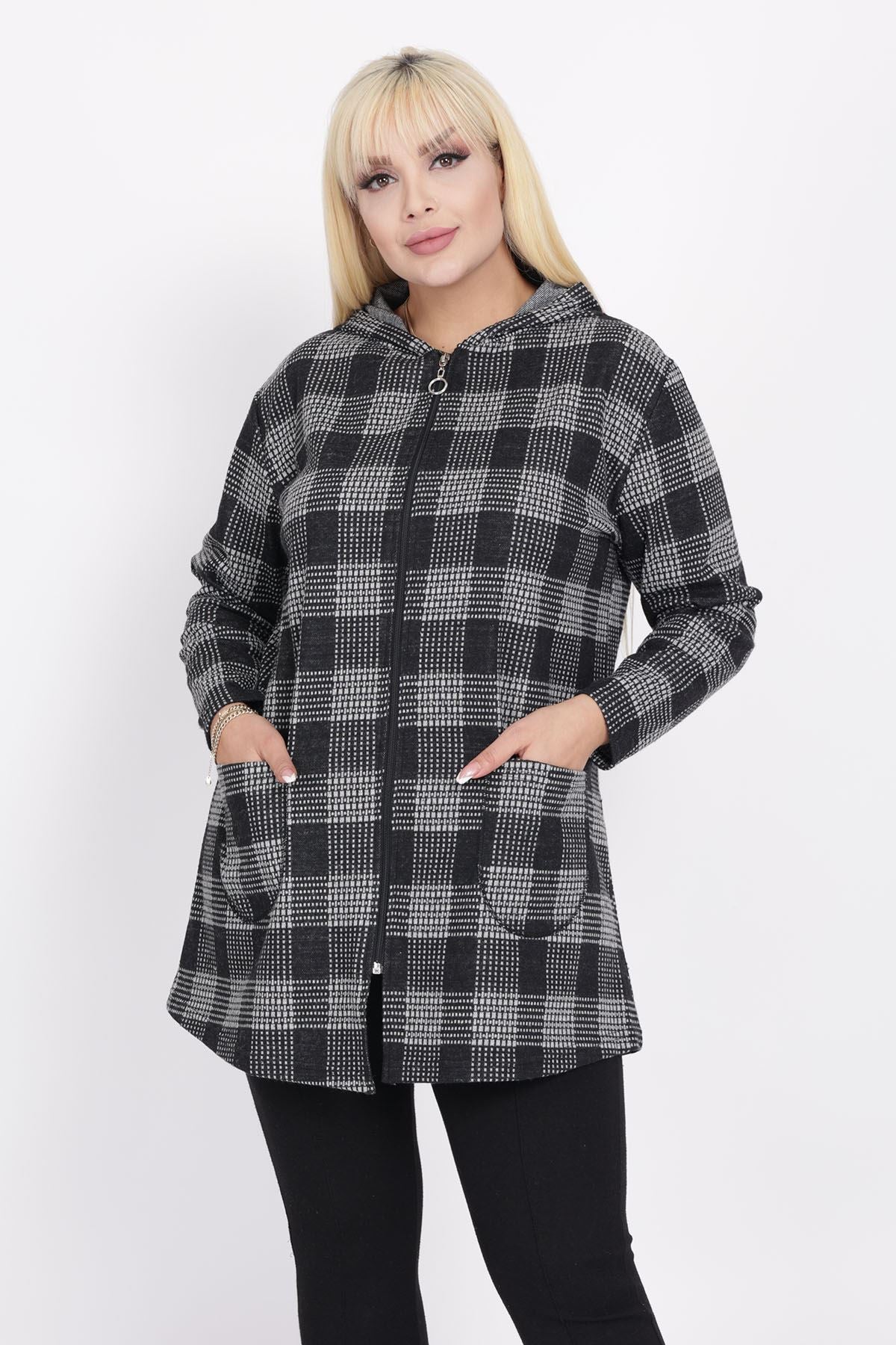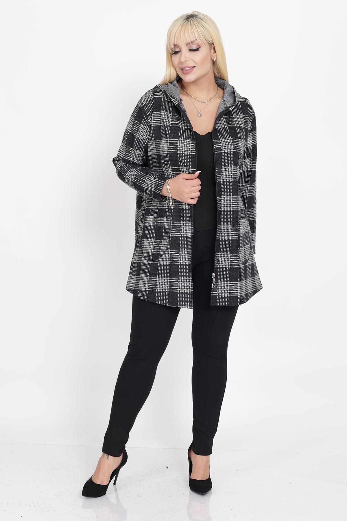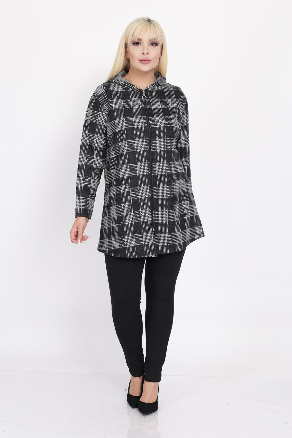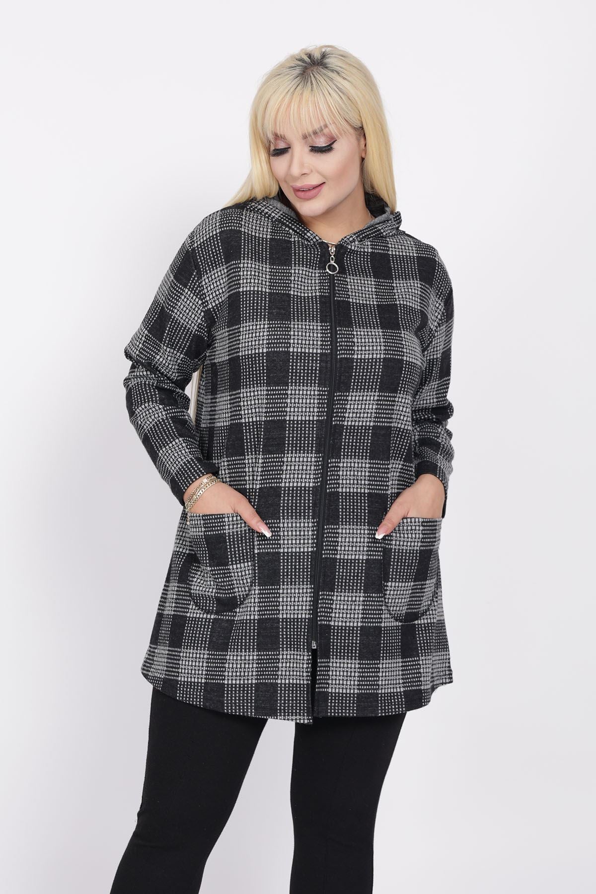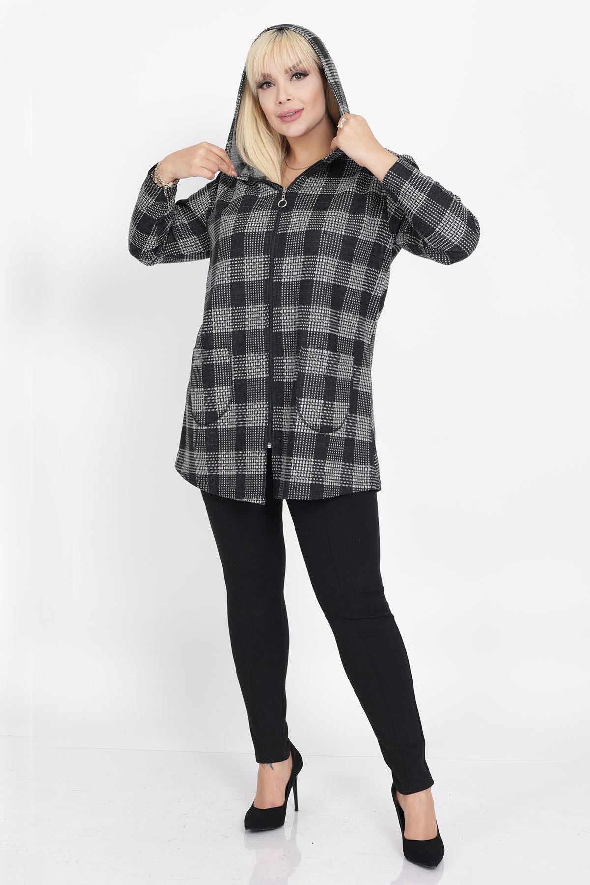 Cardigan con cappuccio e tasche taglia plus size 15C-2219