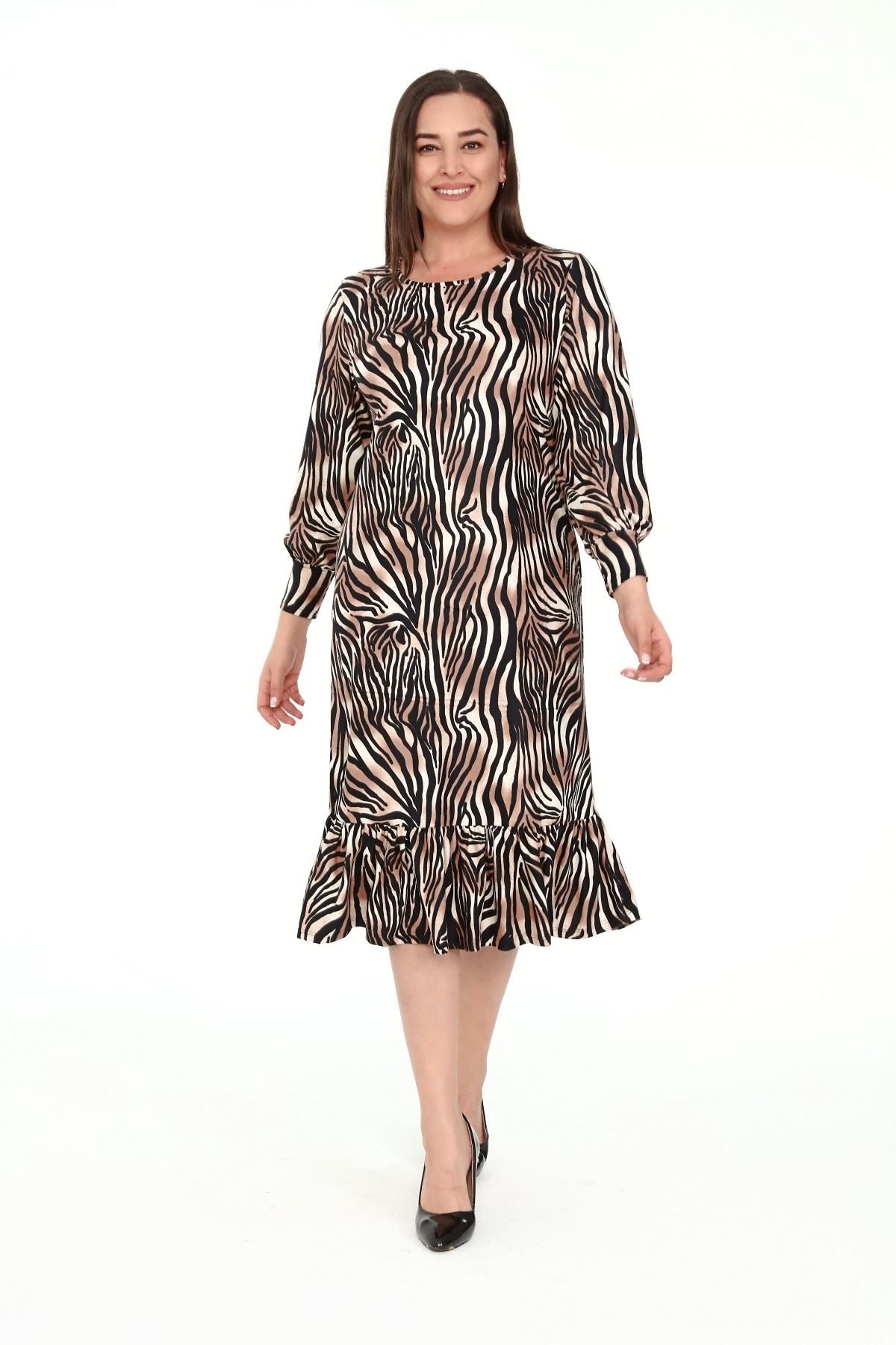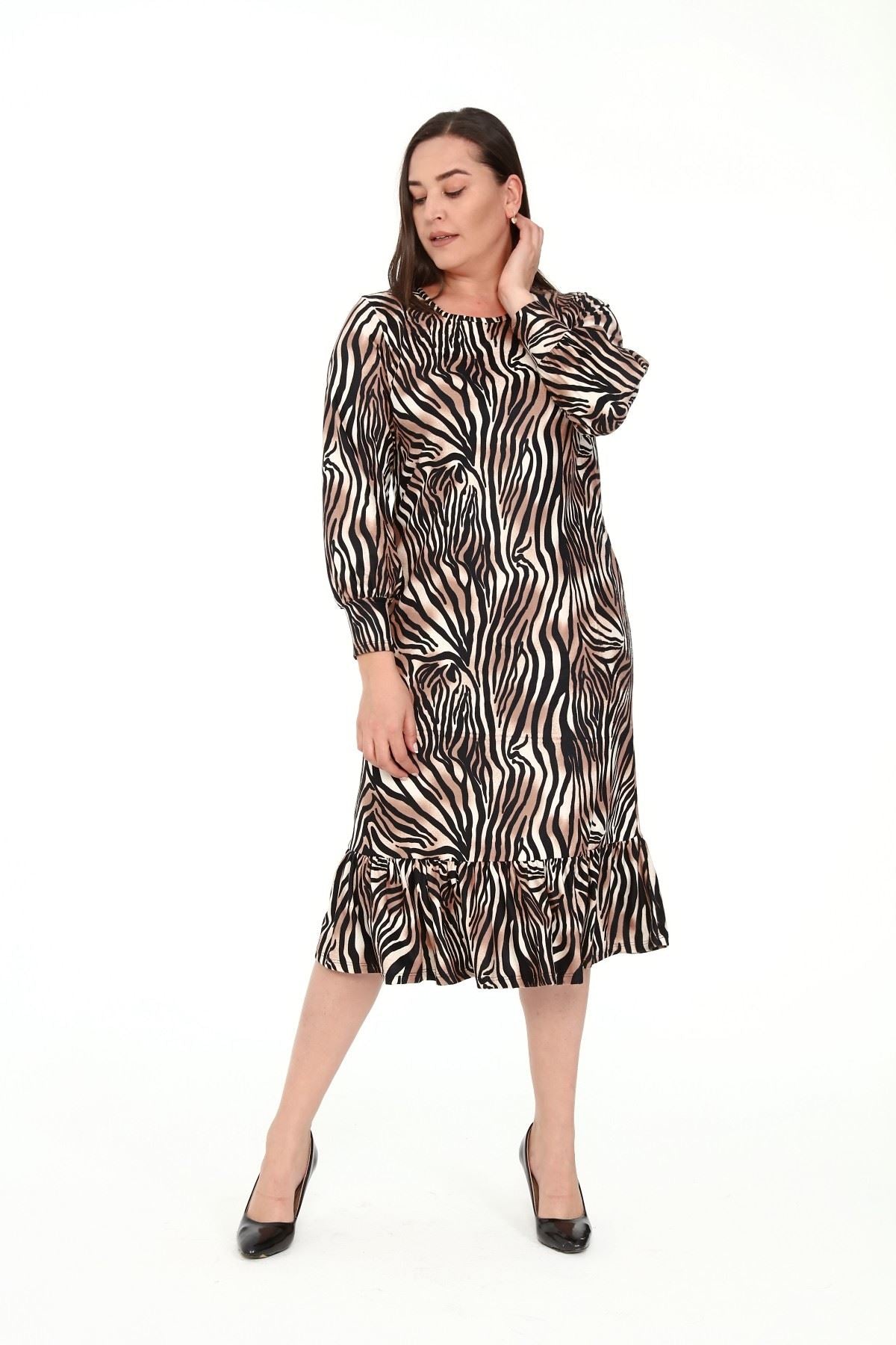 Abito taglie forti con orlo arricciato a motivo zebrato 15D-1912