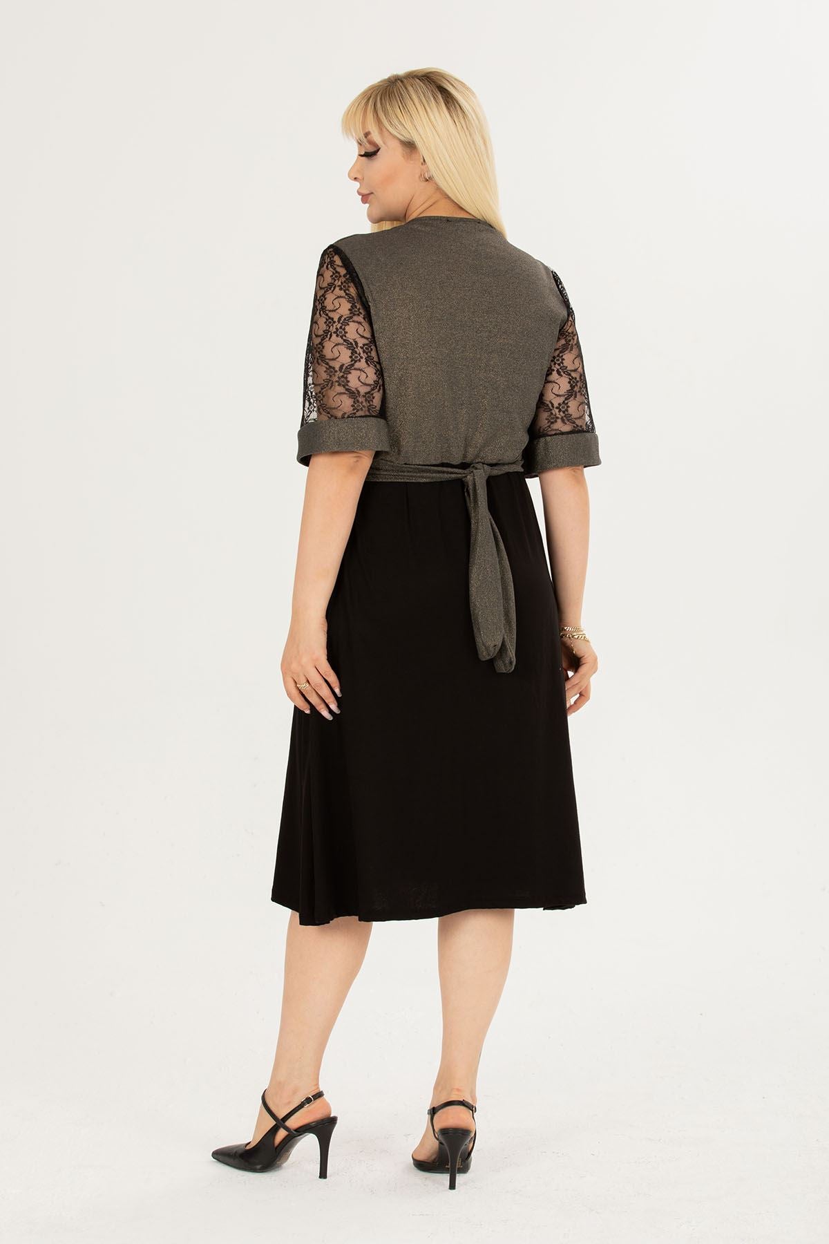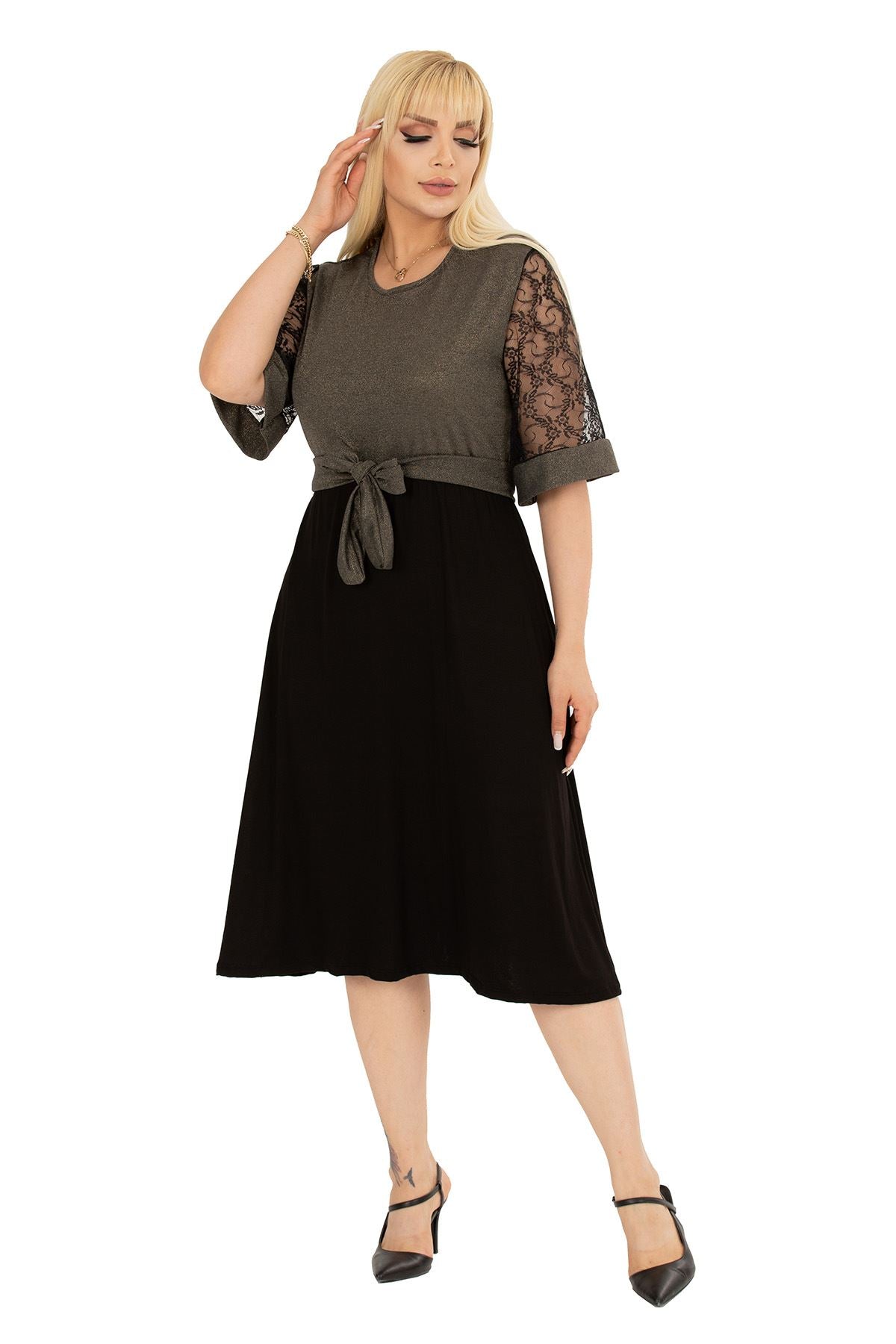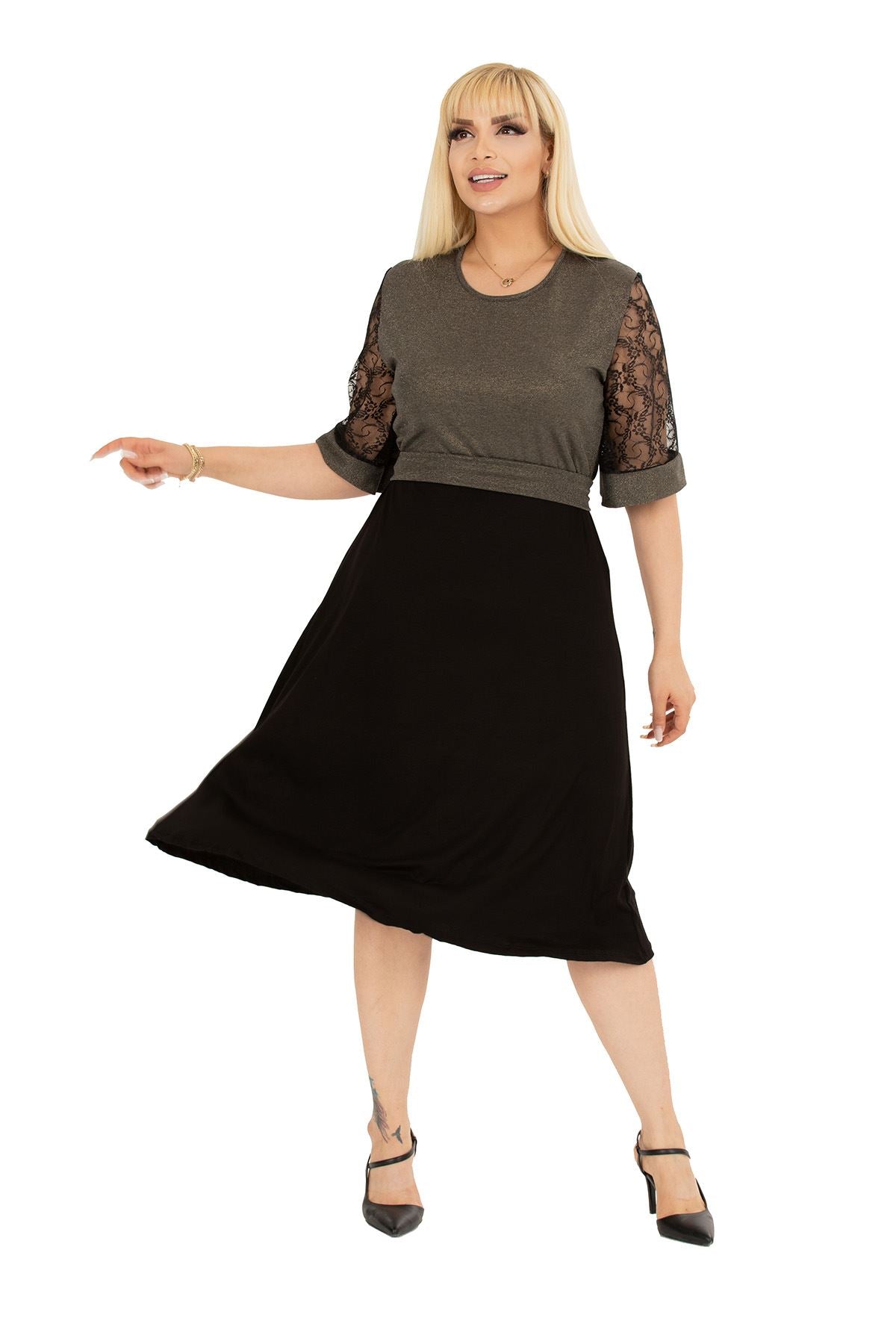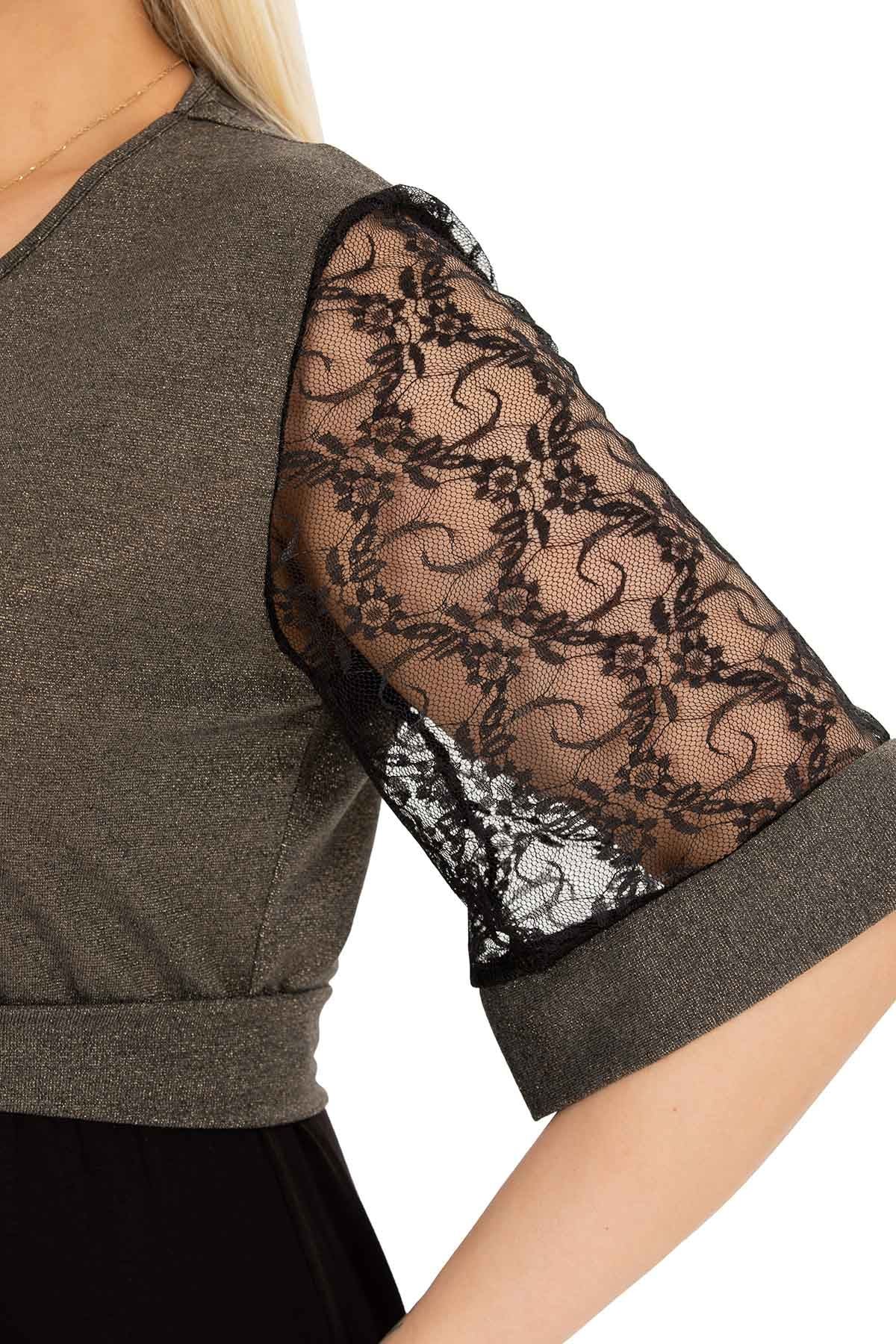 La parte superiore del prodotto è realizzata in tessuto lucido e la parte inferiore è in tessuto di viscosa di lycra. Le maniche sono combinate con pizzo. Realizzato in tessuto flessibile.