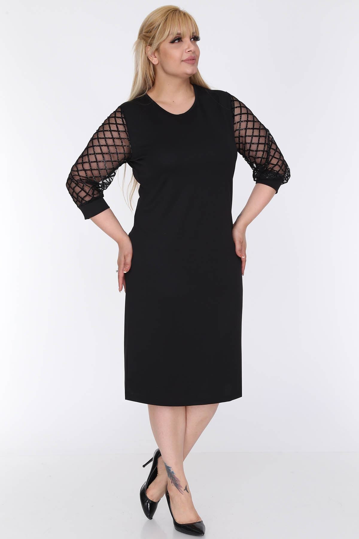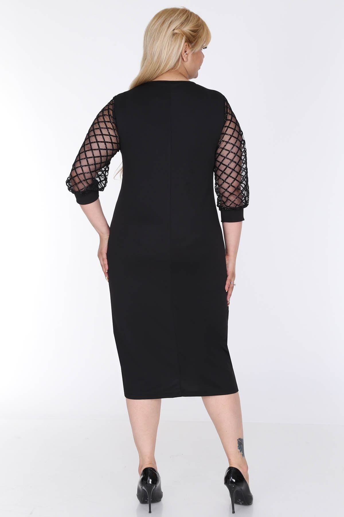 Abito taglie forti con maniche in velluto luccicante 3C-0572