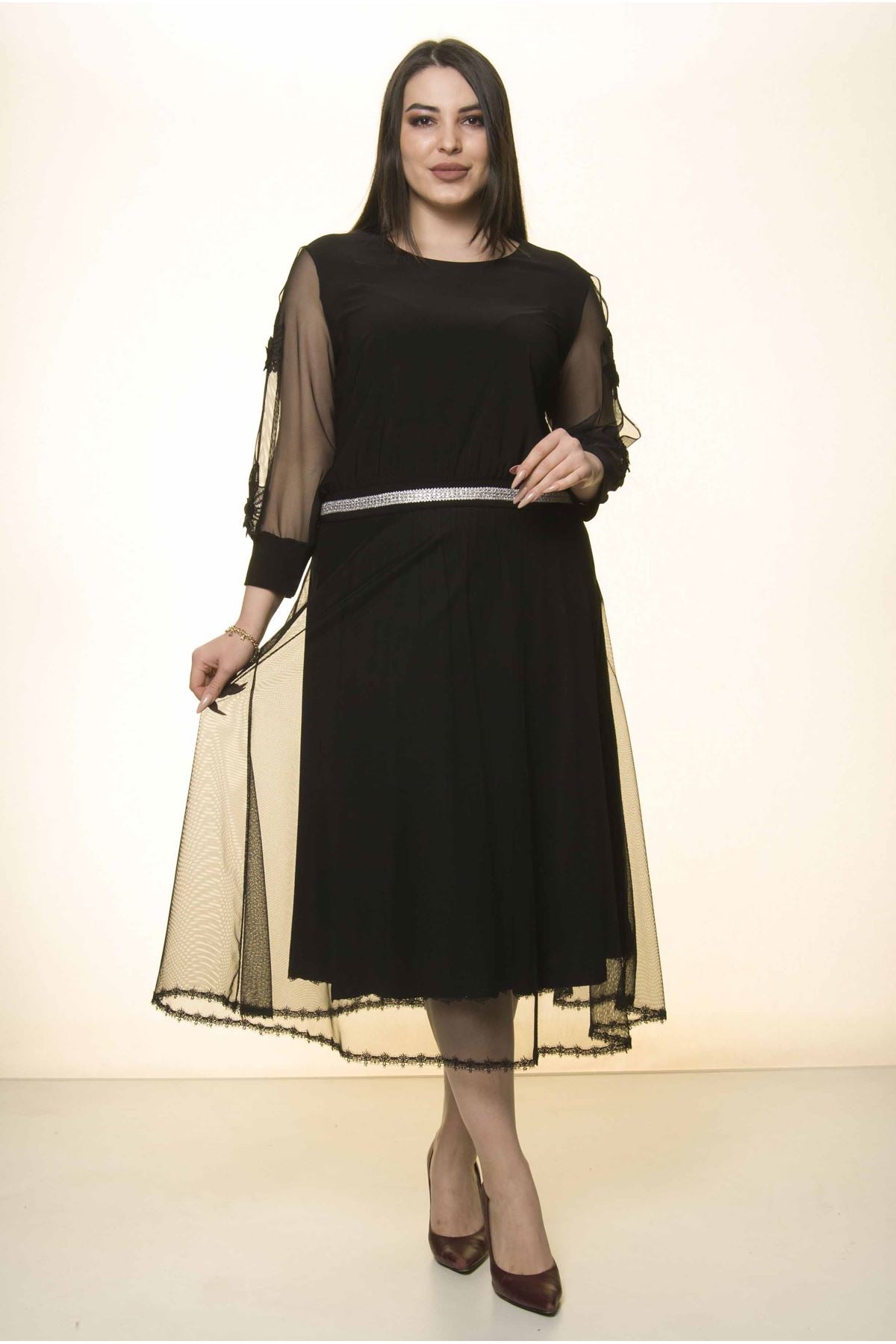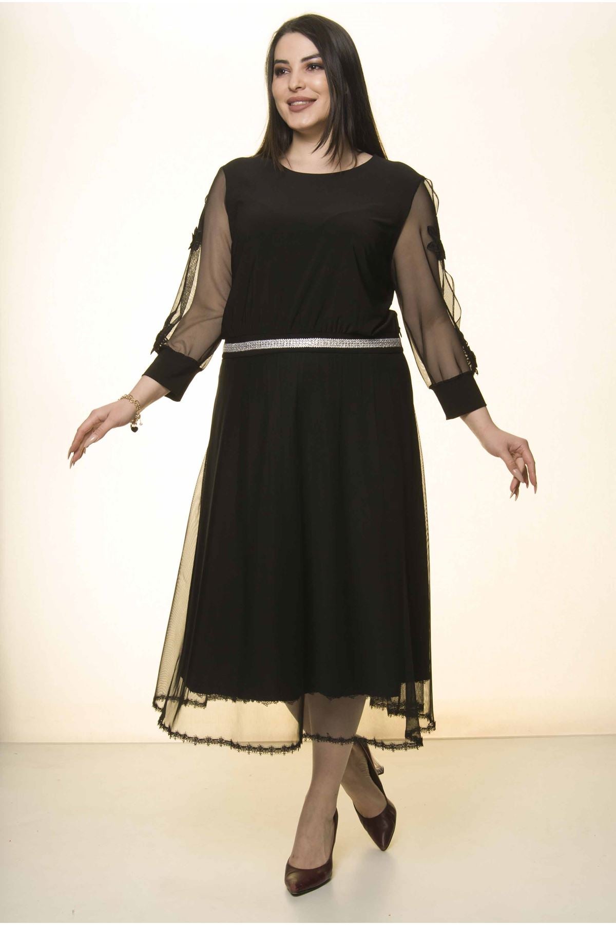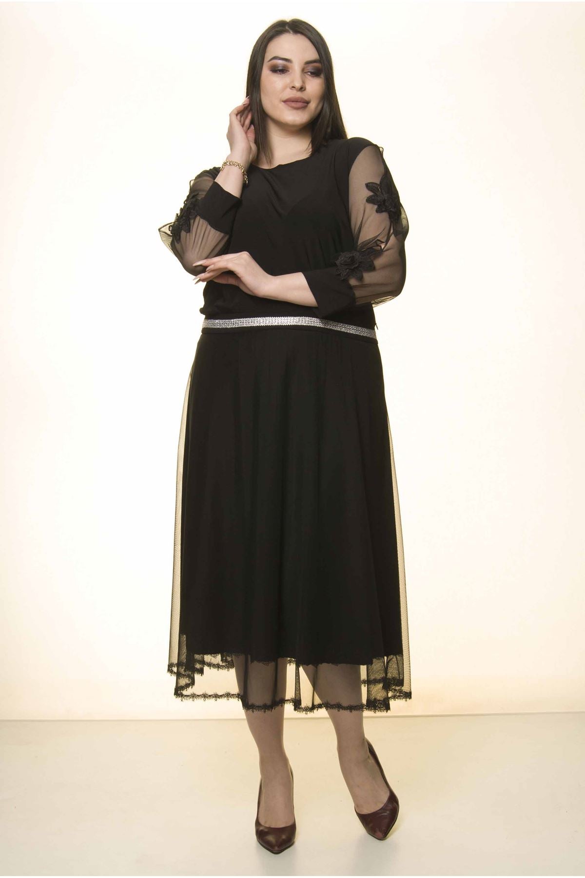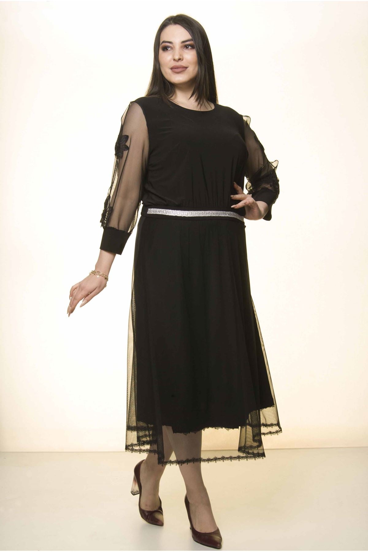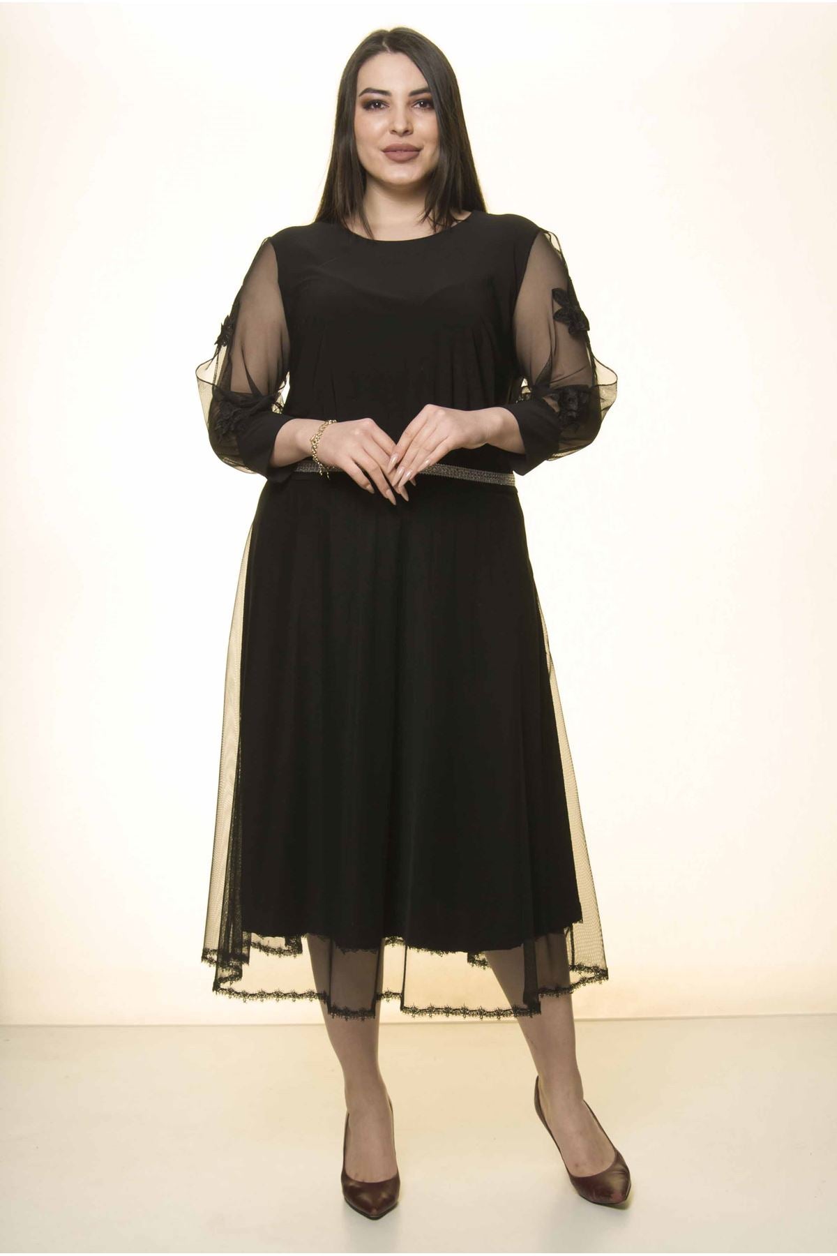 Abito taglie forti nero con ricamo a braccio 31A-1571