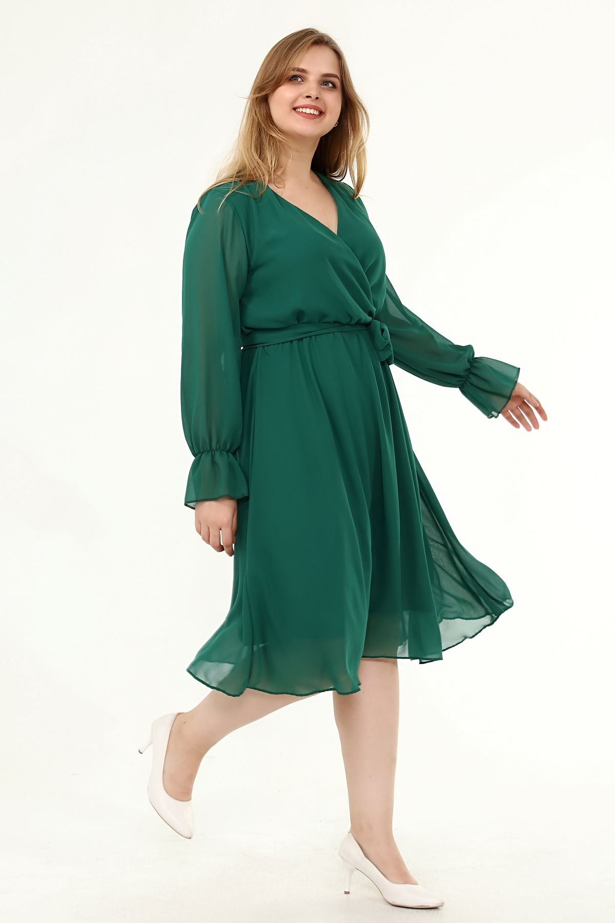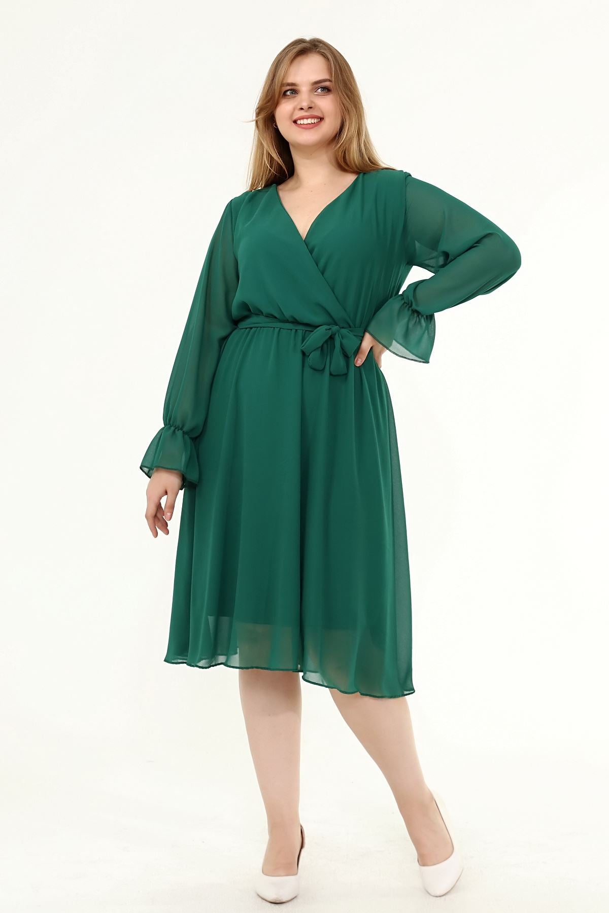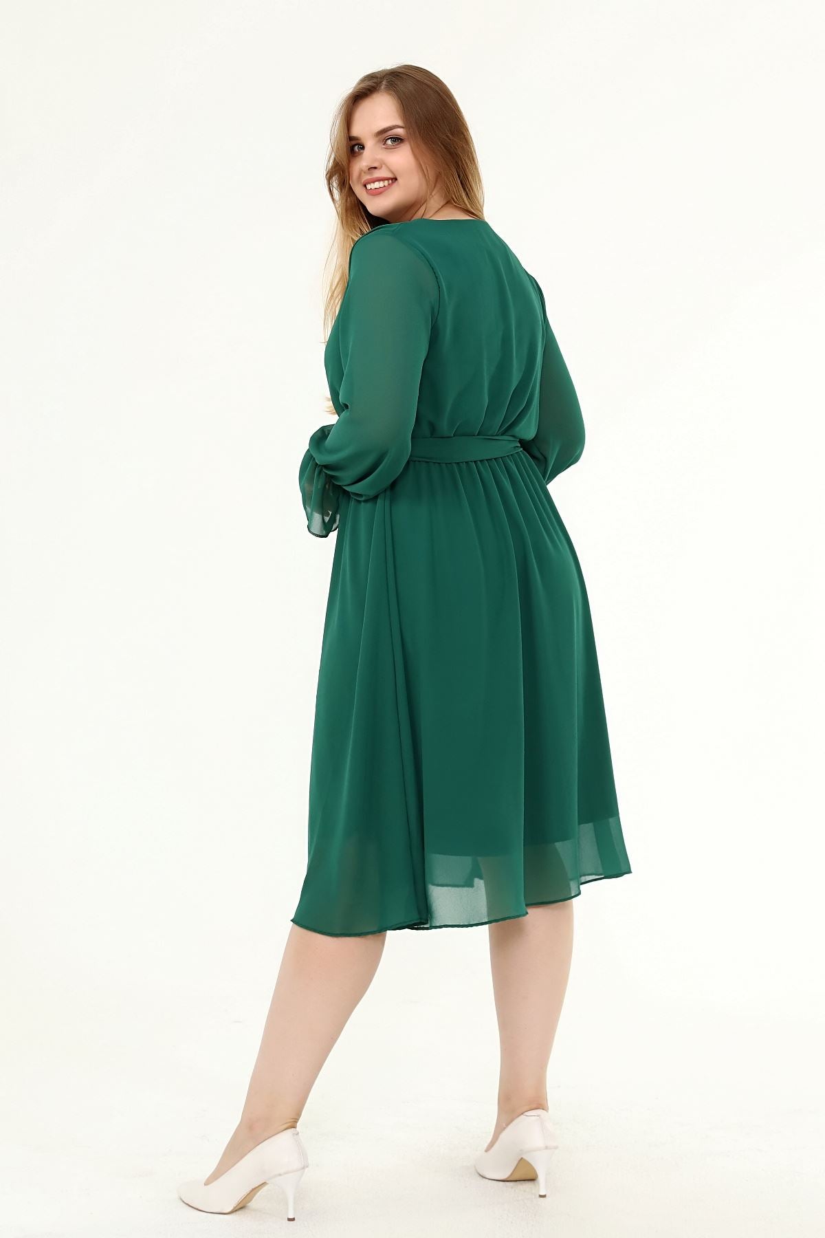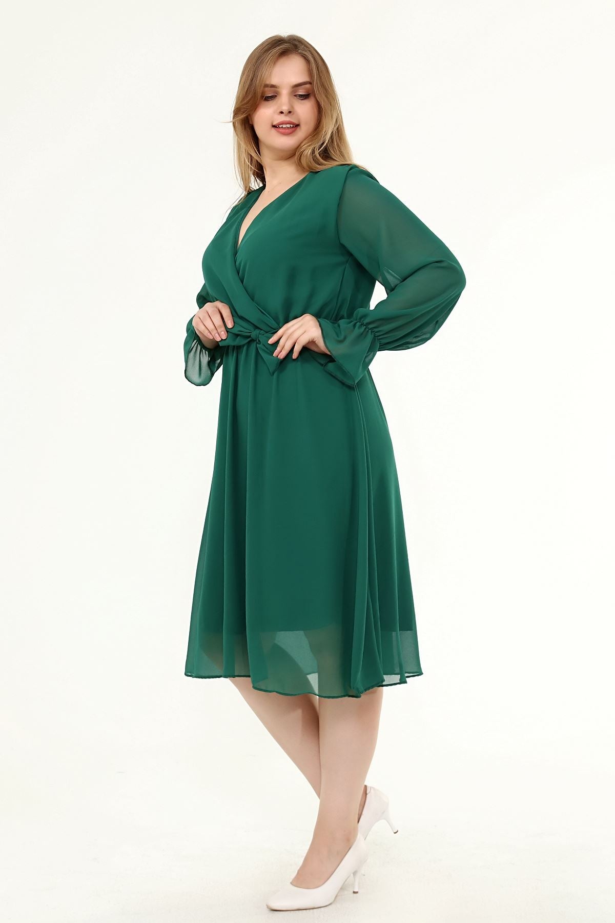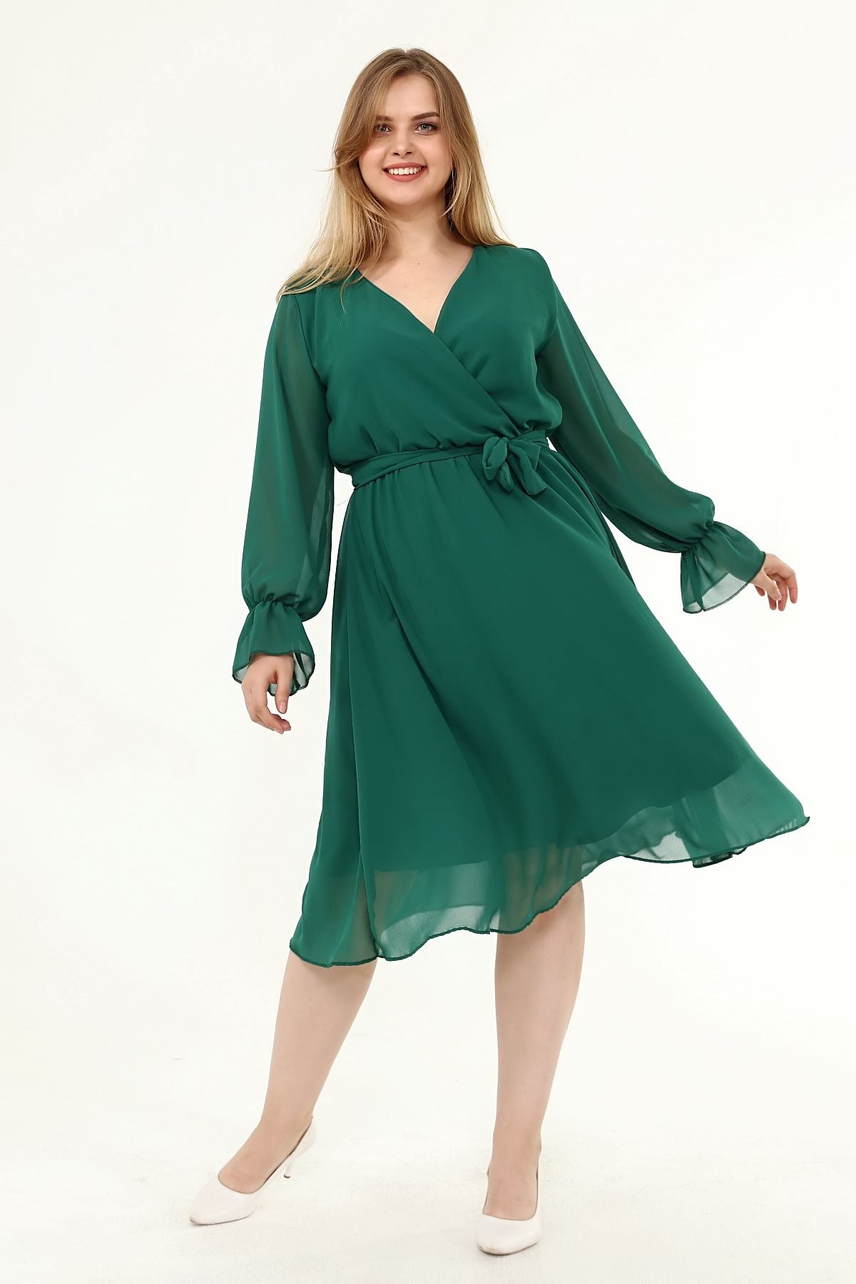 Abito lungo in chiffon taglia forte a maniche lunghe 30Y-1823