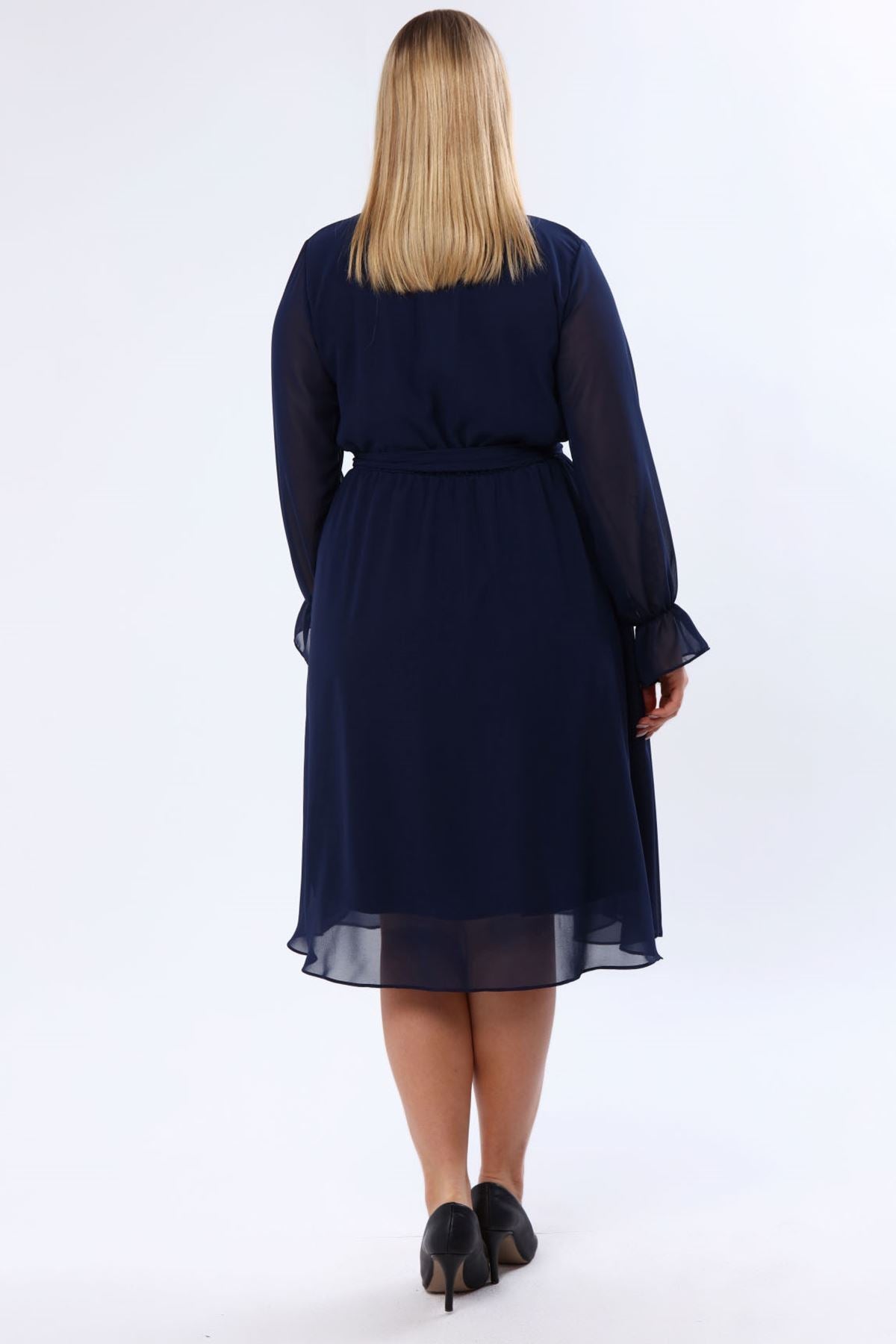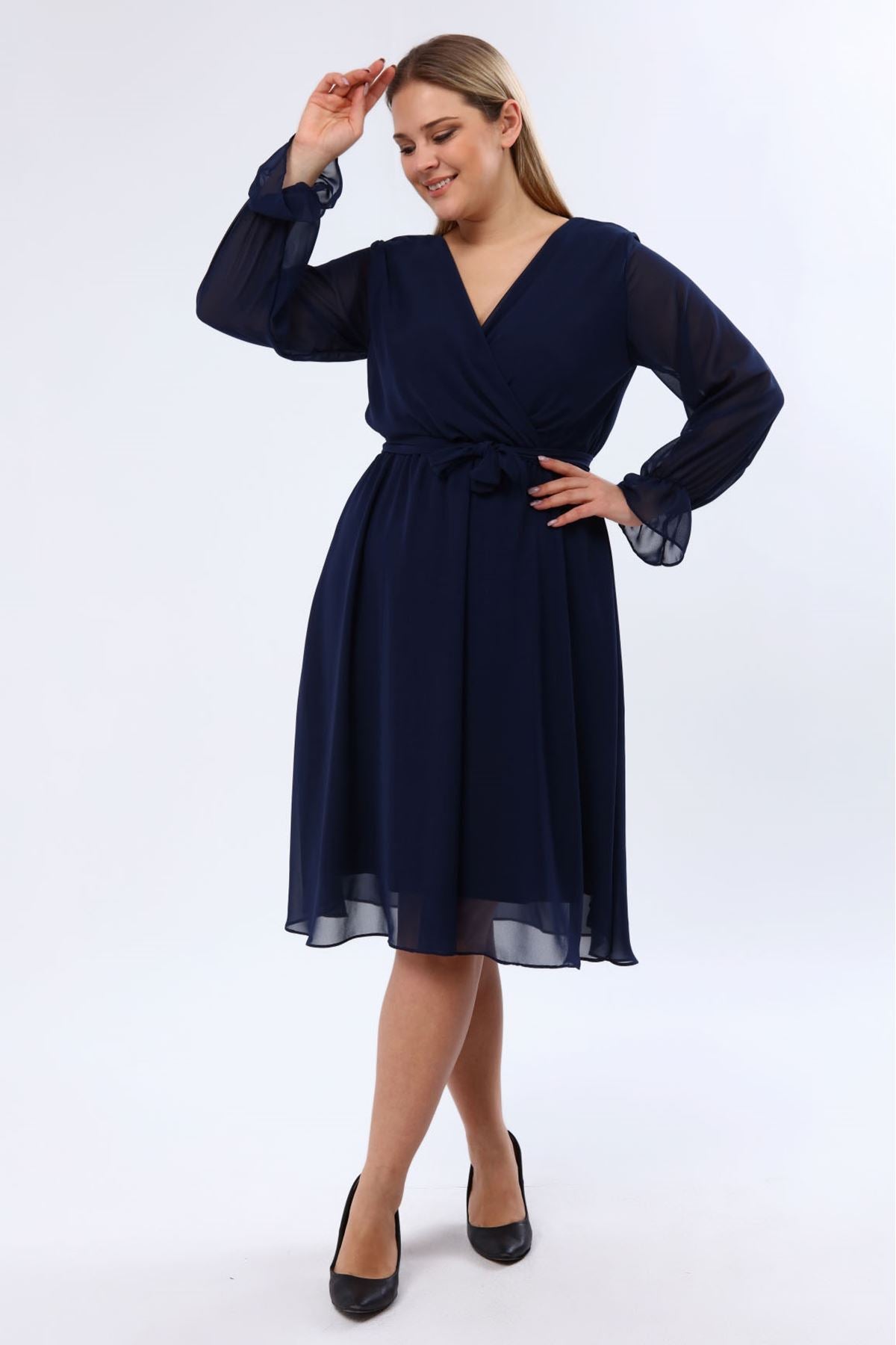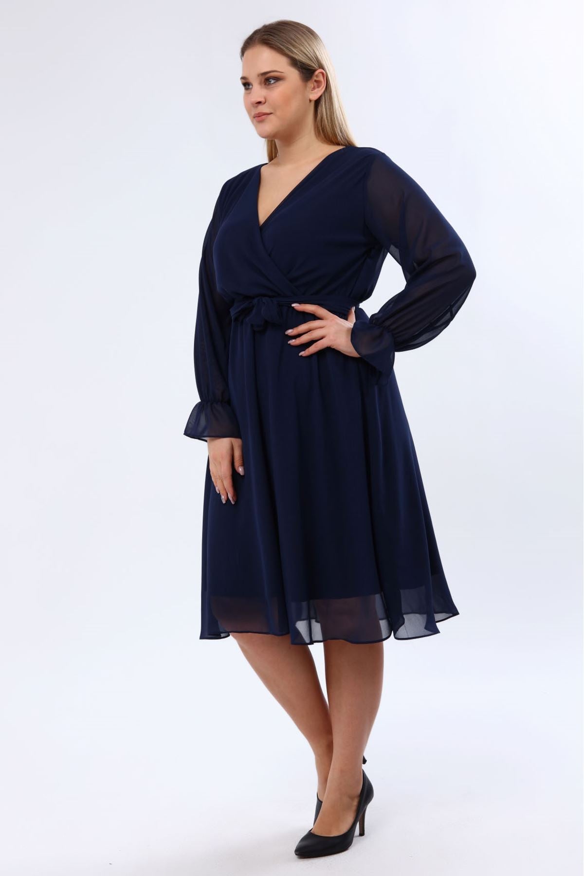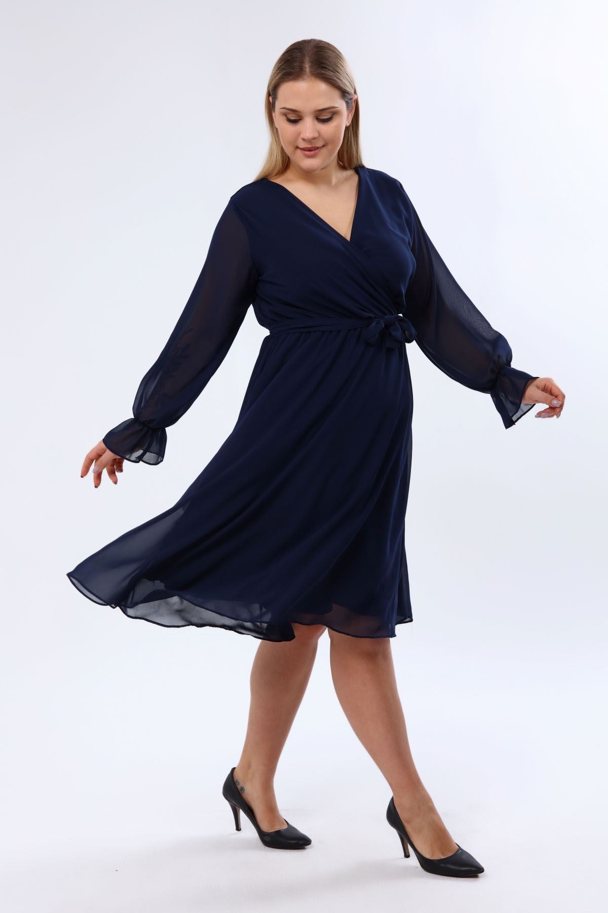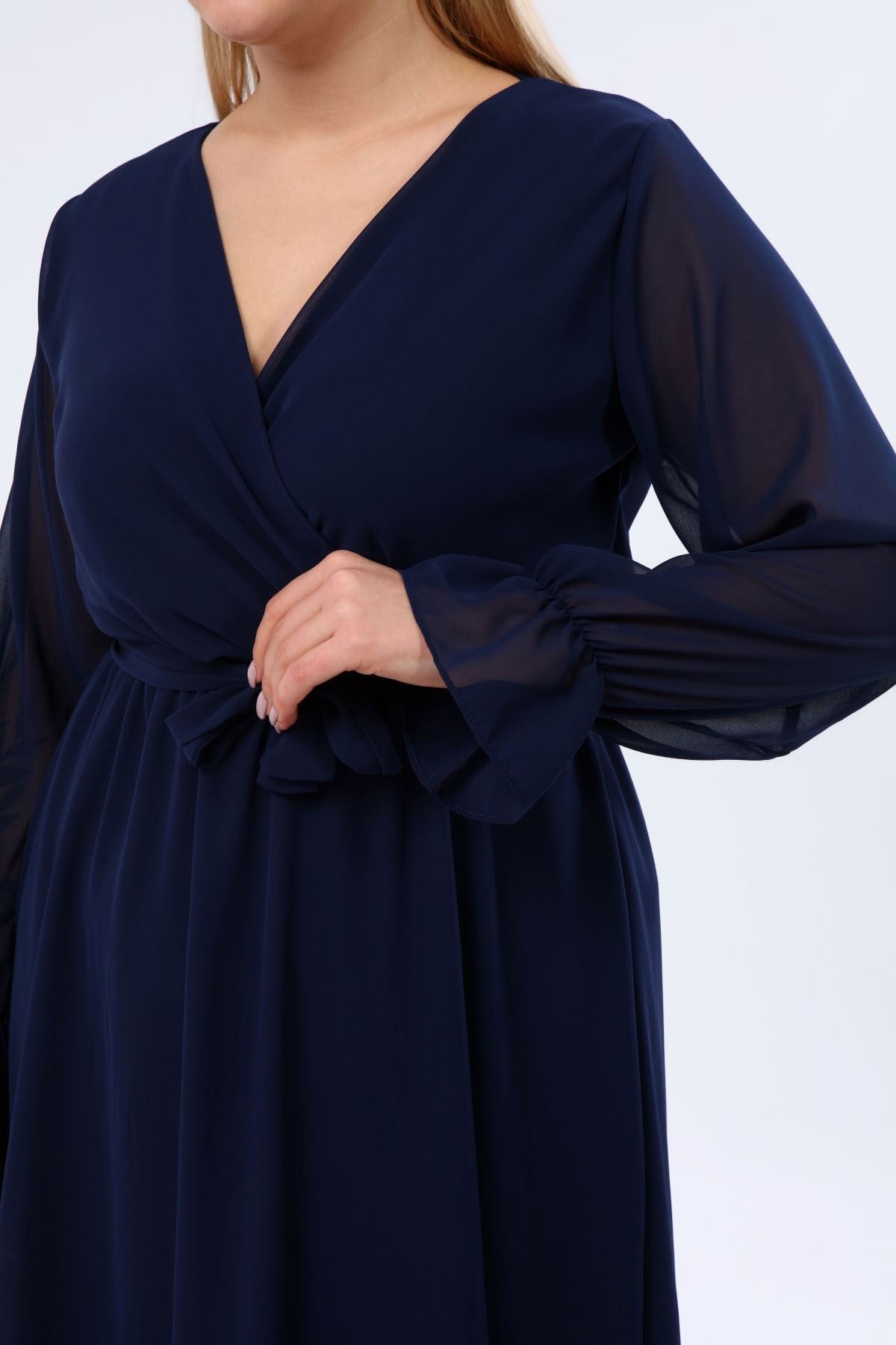 Abito lungo in chiffon taglia forte a maniche lunghe colore navy 30A-1972