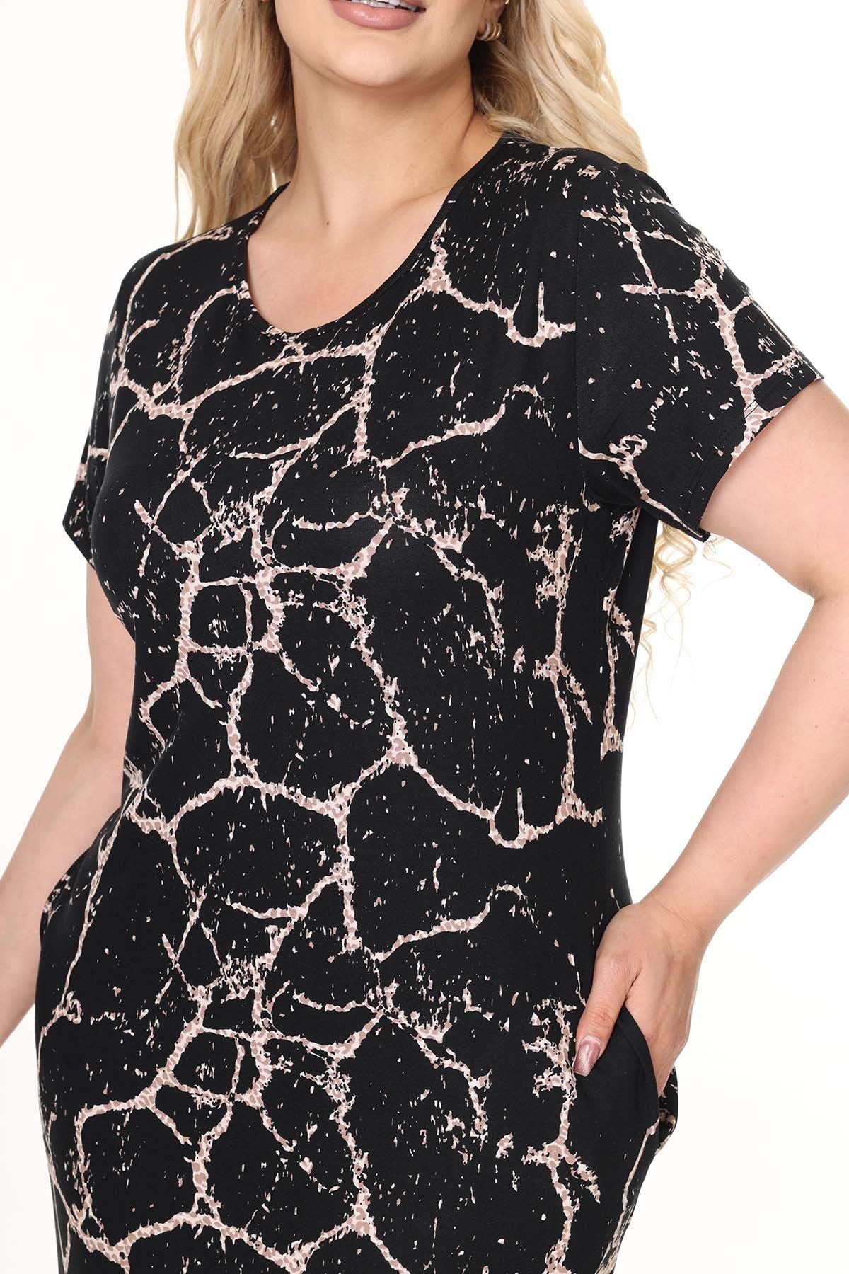 Abito estivo a maniche corte con doppia tasca e taglia comoda flessibile 36B-2672.