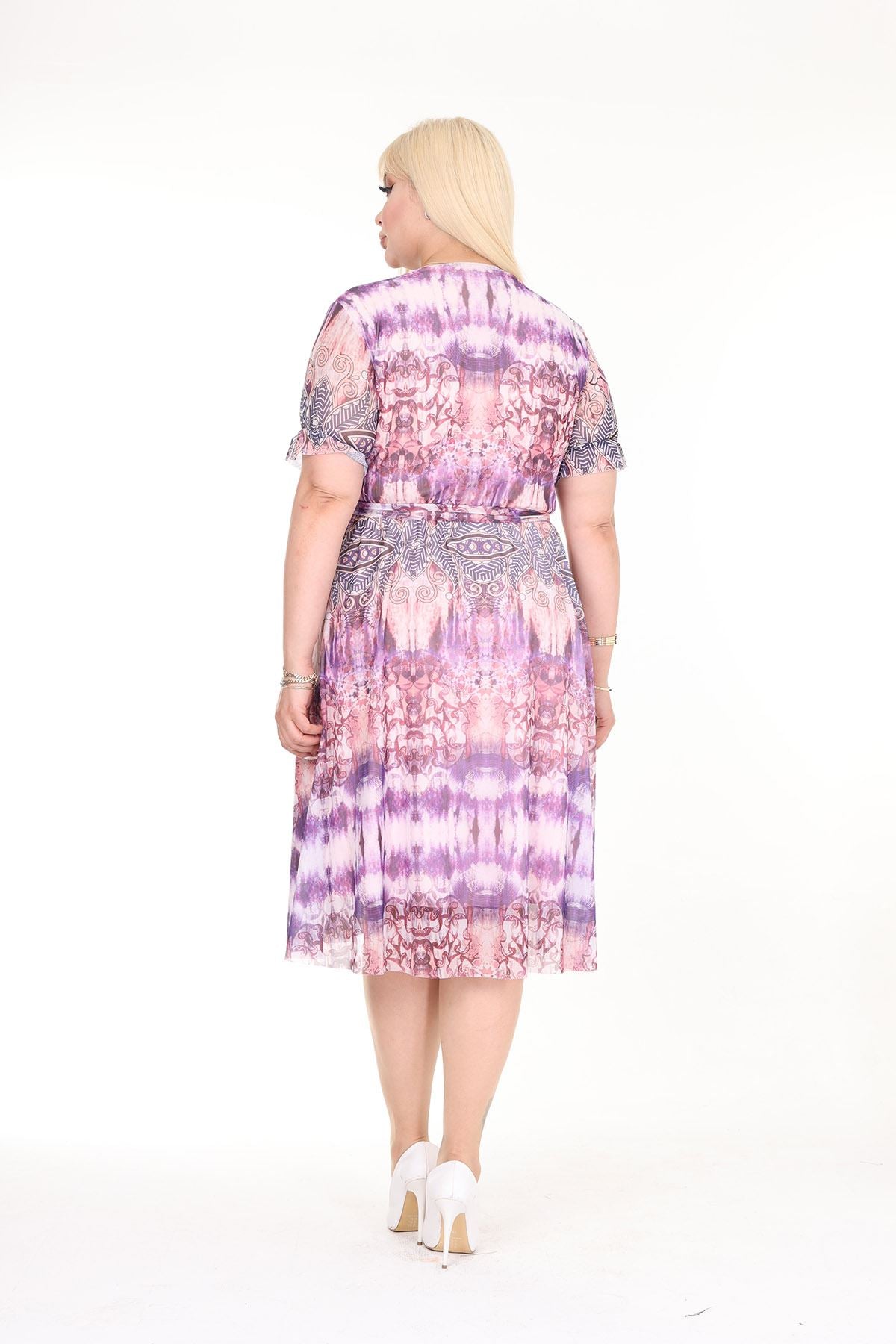 Abito estivo a maniche corte taglie forti con scollo a incrocio e fantasia 27C-2575