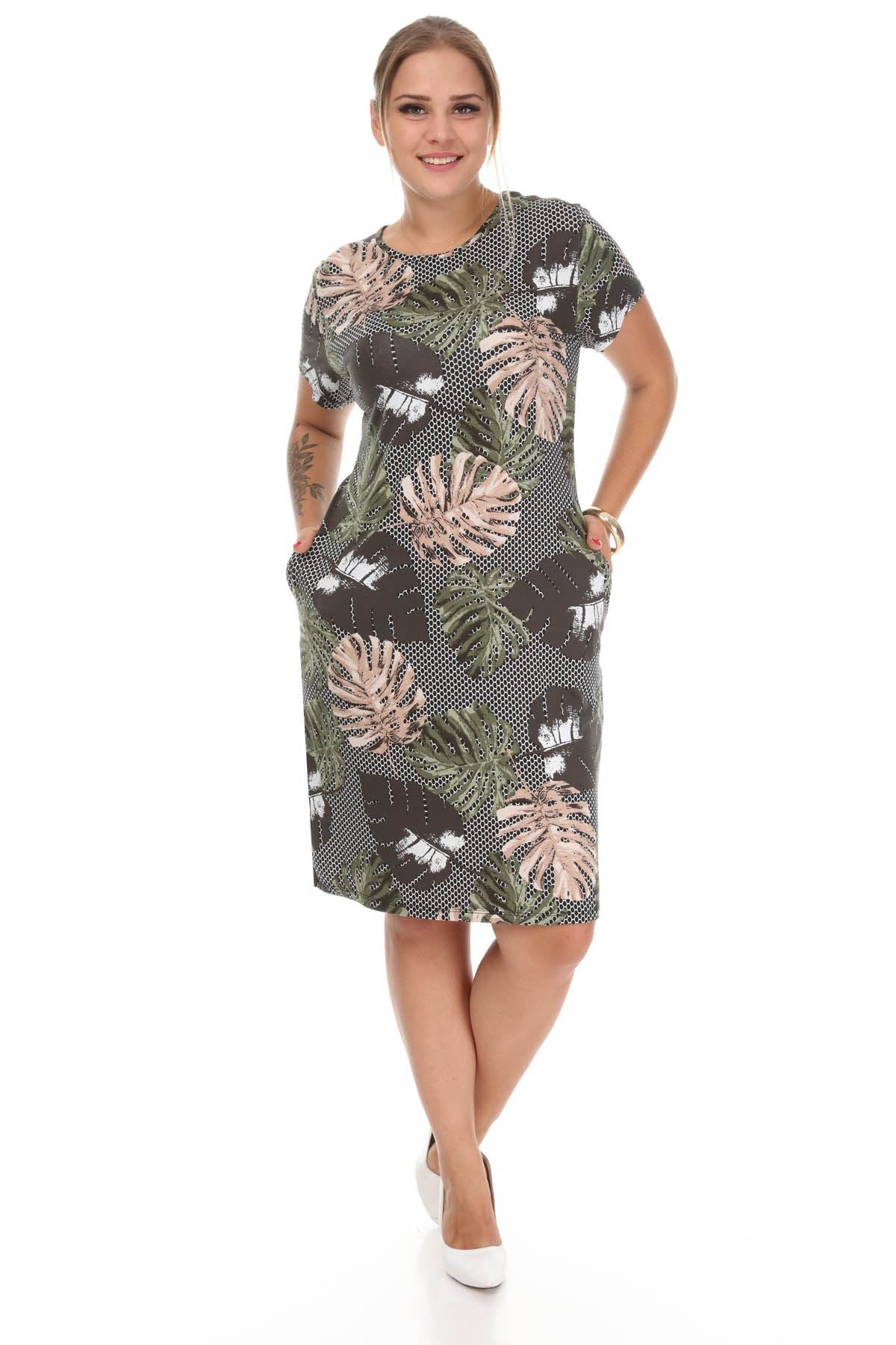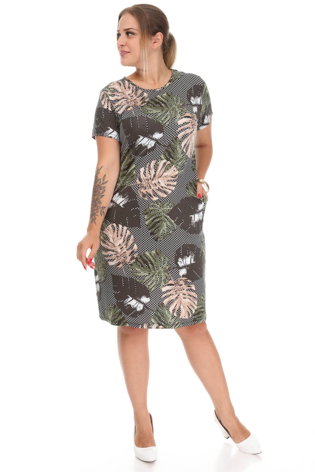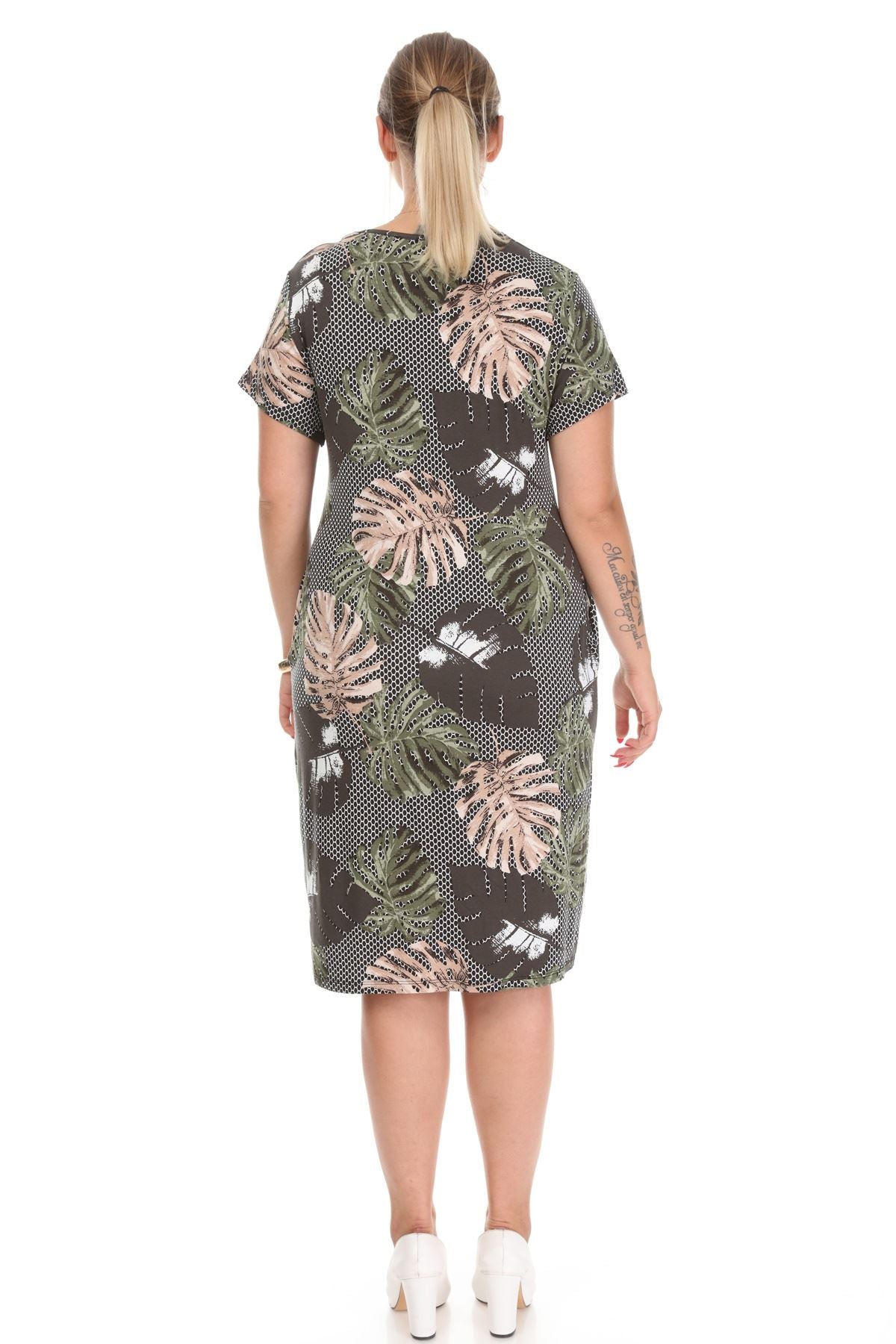 Green Patterned Plus Size Dress with Pockets 5C-1223
